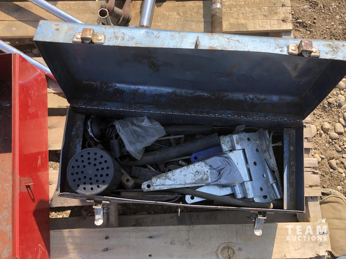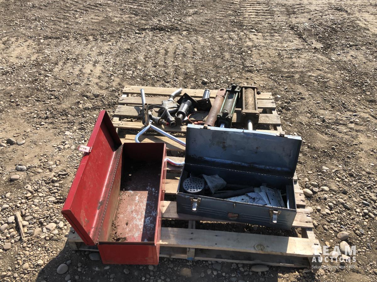 Hydraulic rams, gas nozzle, tacks, tool boxes, miscellaneous hinges