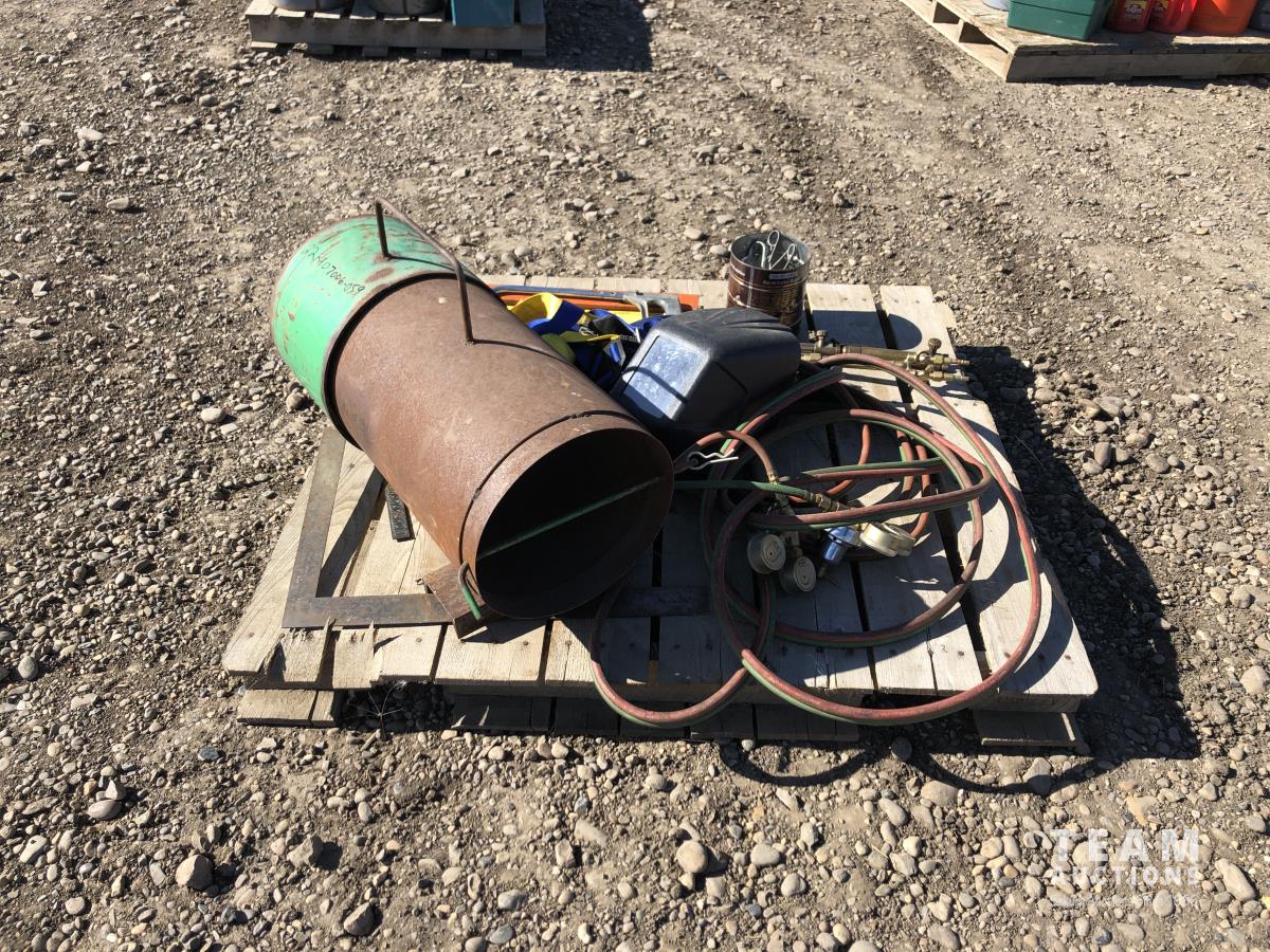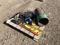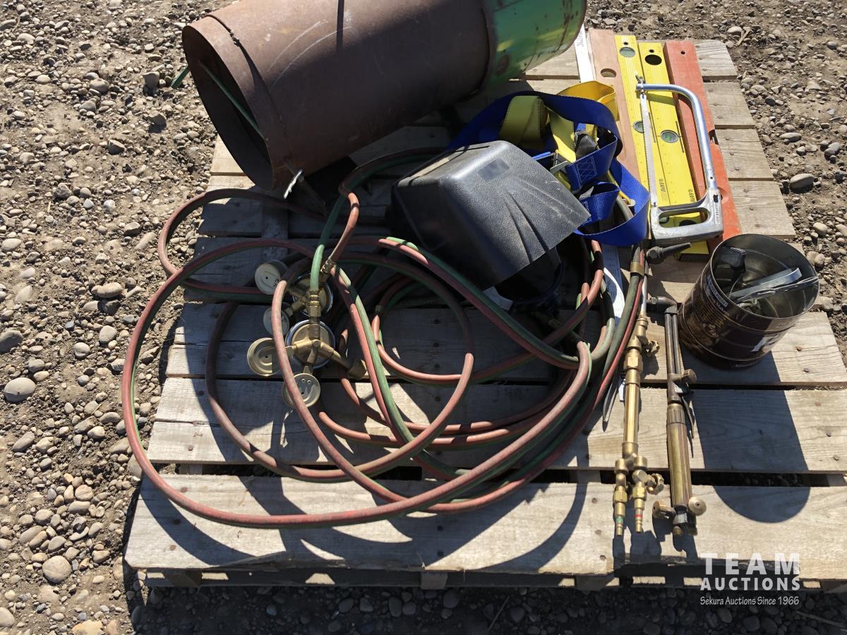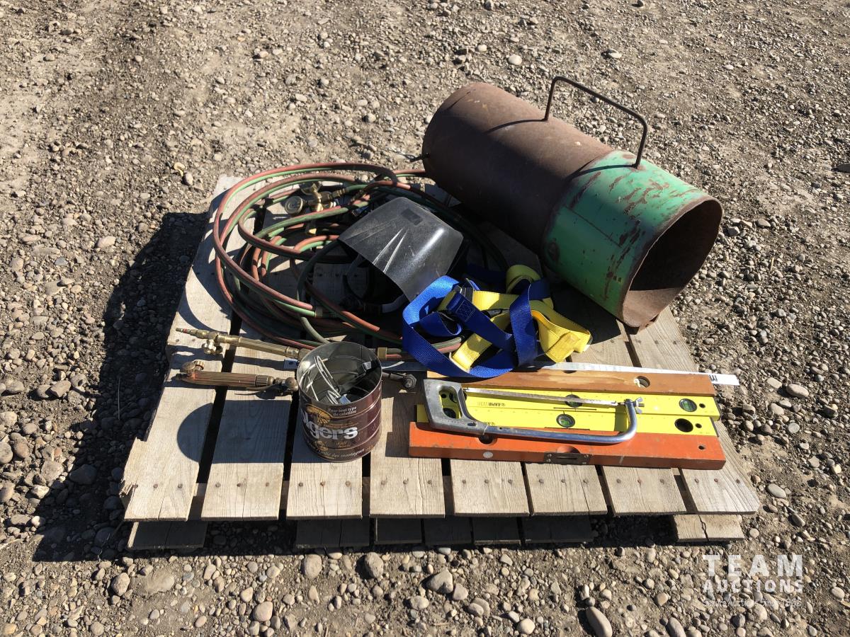 Levels, welding helmets, acetylene torch & hose, tiger torch heater