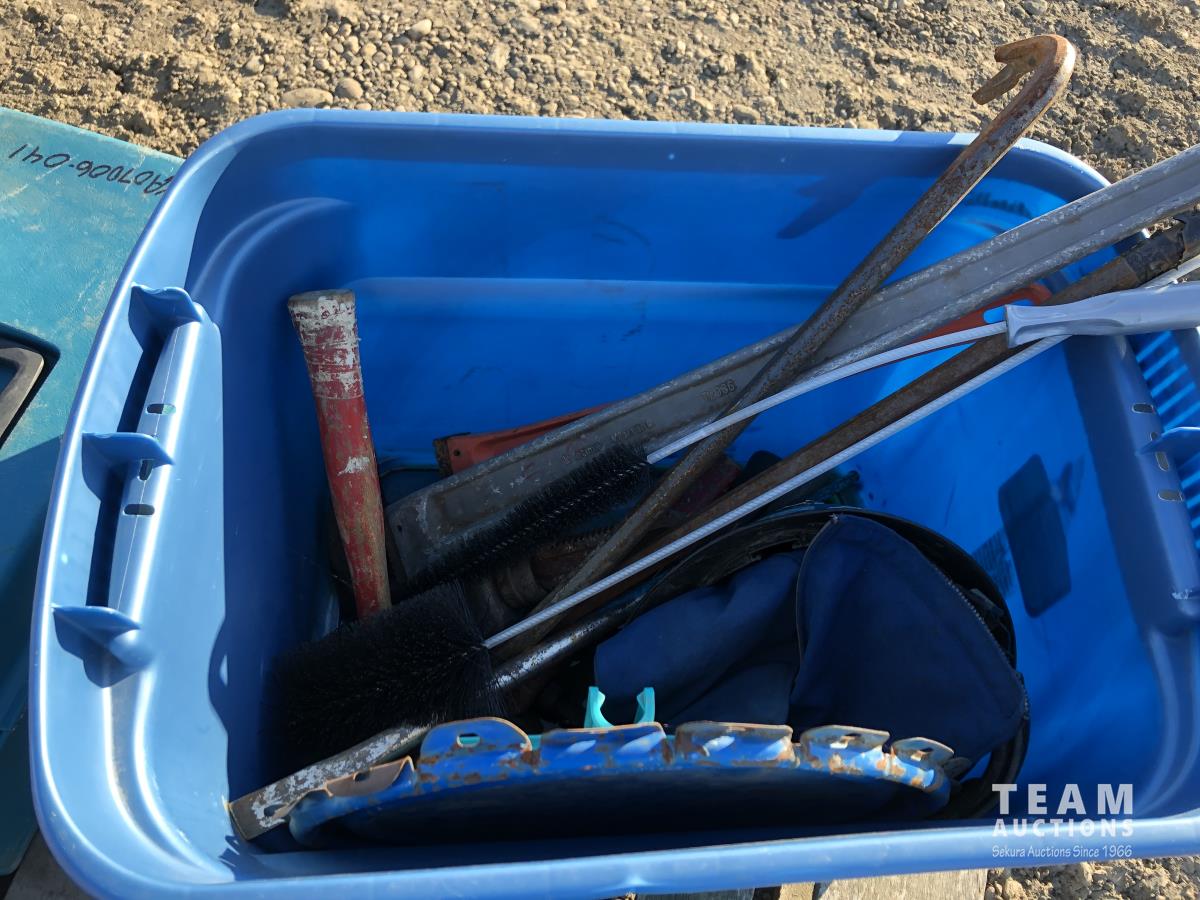 Pipe wrench, hard hat, rad hoses, miscellaneous wrenches, miscellaneous air tools, screw drivers