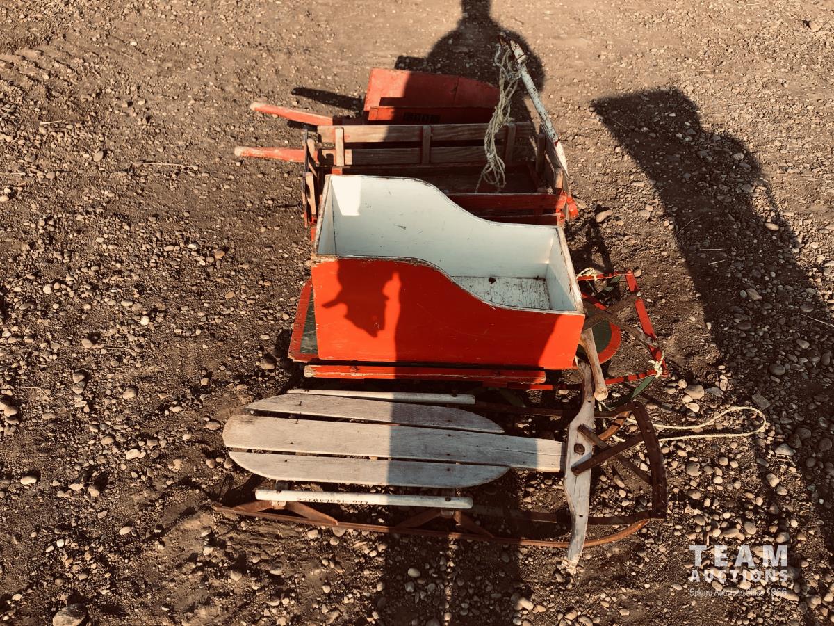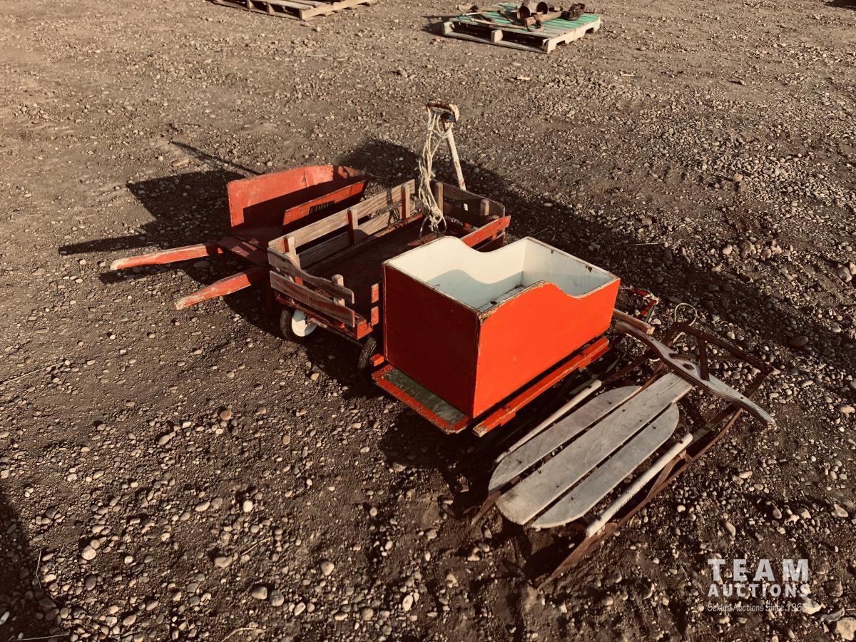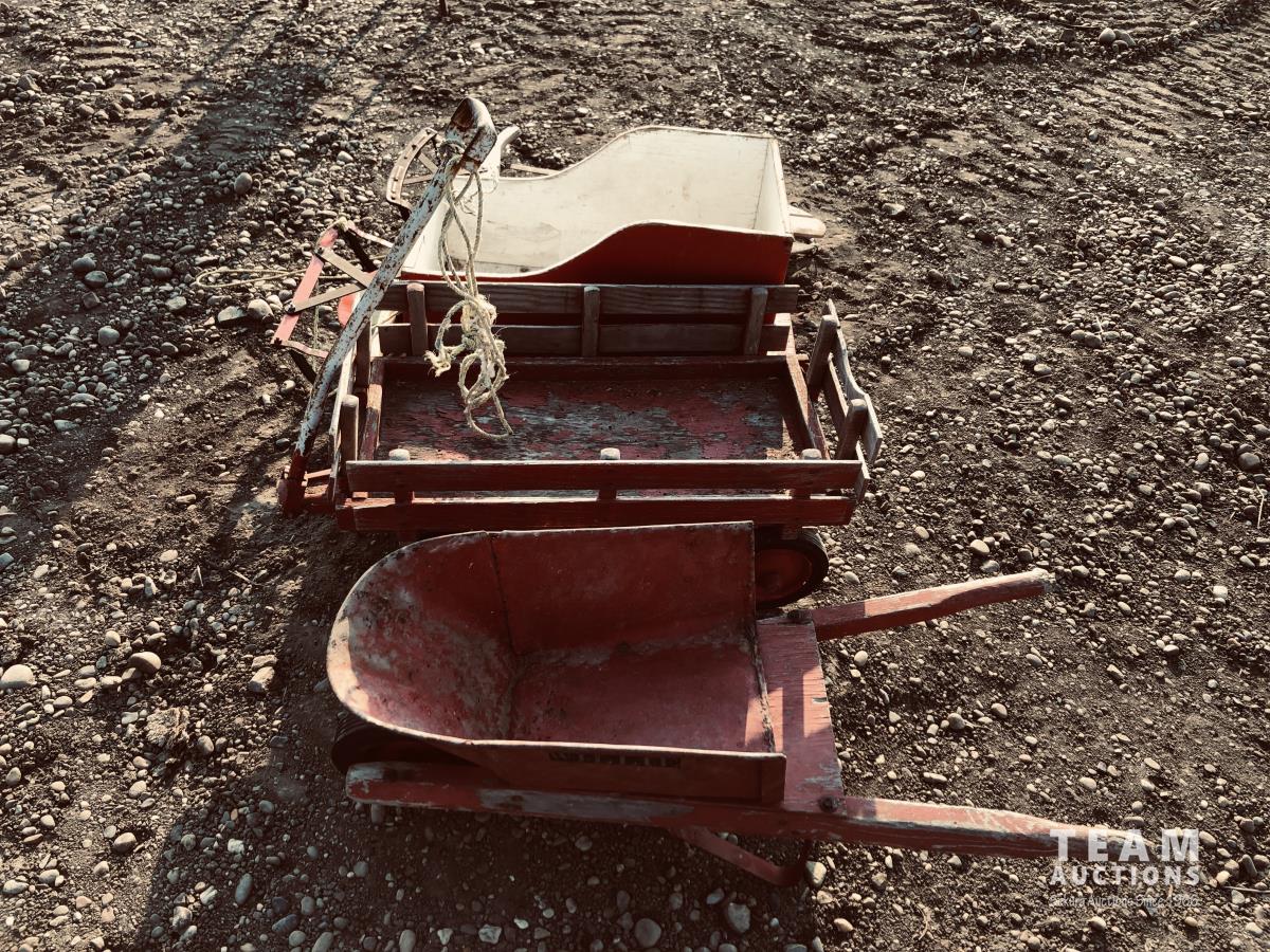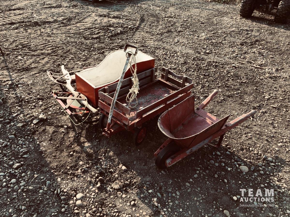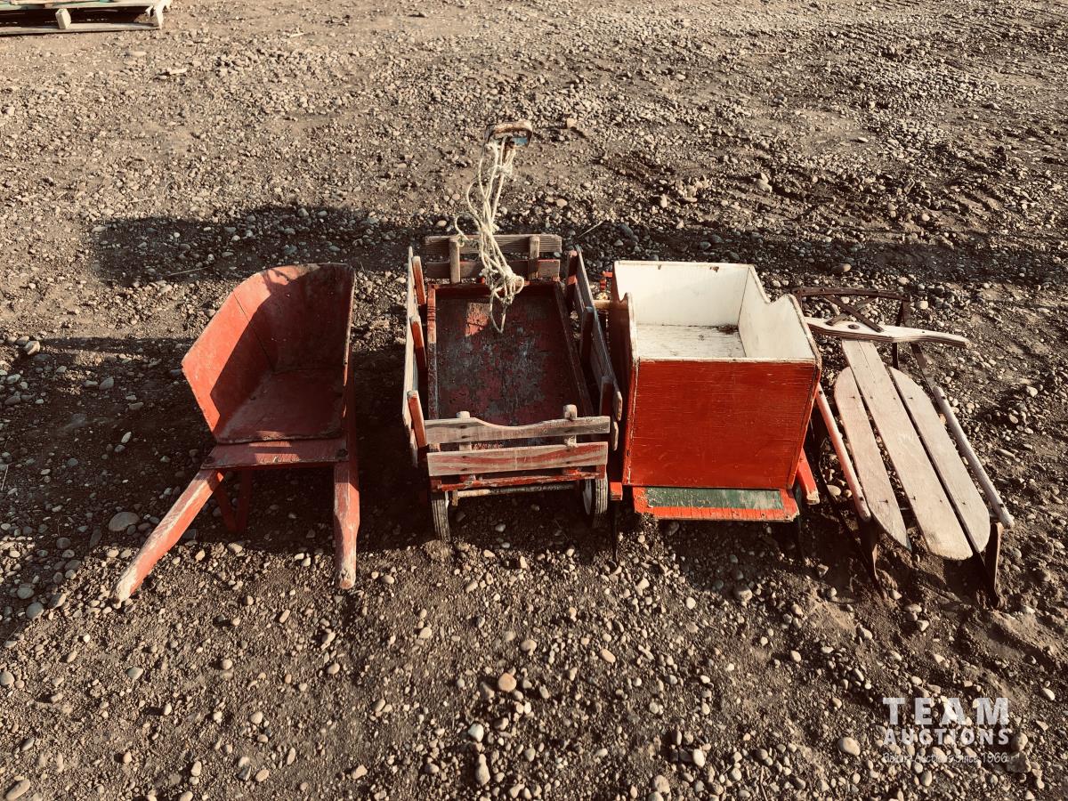 50 Wagon, Wheel Barrow & (2) Sleighs