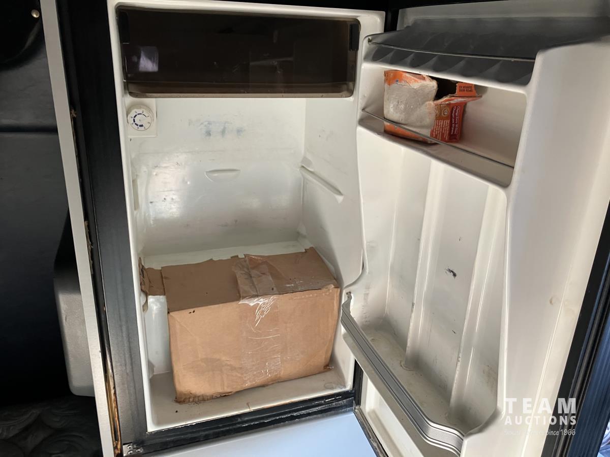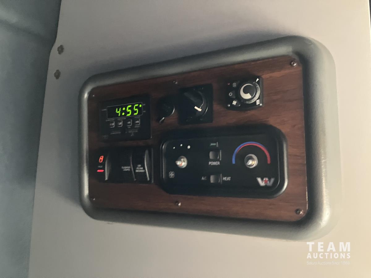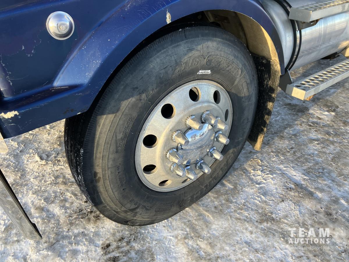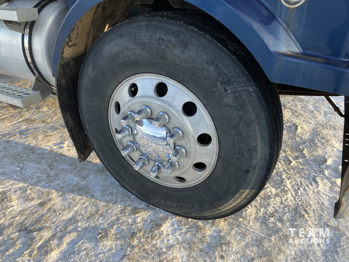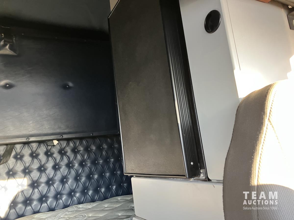 Mercedes 450 HP diesel engine, engine brake, engine block heater, Eaton Fuller 13 speed manual transmission, wet kit, air suspension, 12,000 lb front axles, 20,000 lb rear axles, diff lock, 244 inch WB, A/C, air ride driver seat, 68 inch sleeper, sleeper heater, fridge, bunk beds, all aluminum wheels, 11R22.5 tires