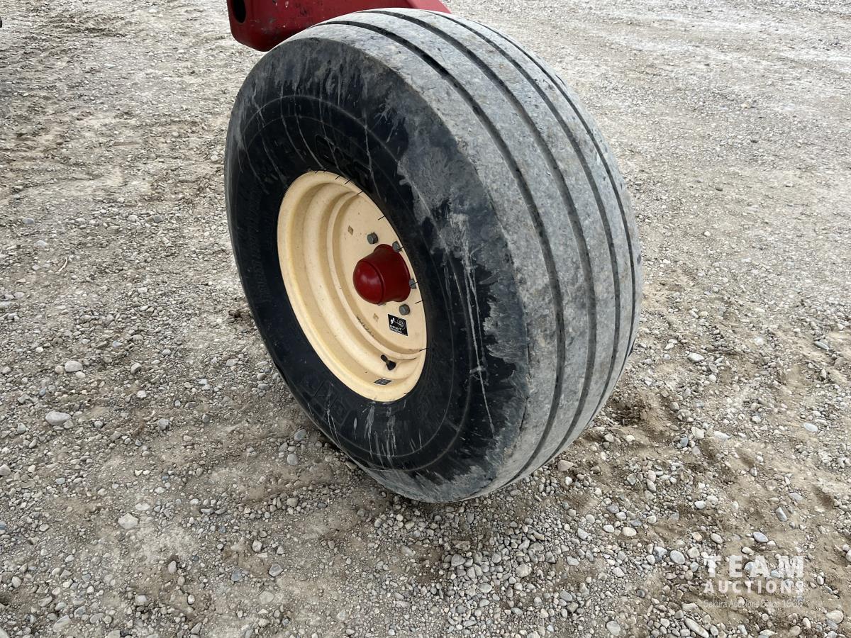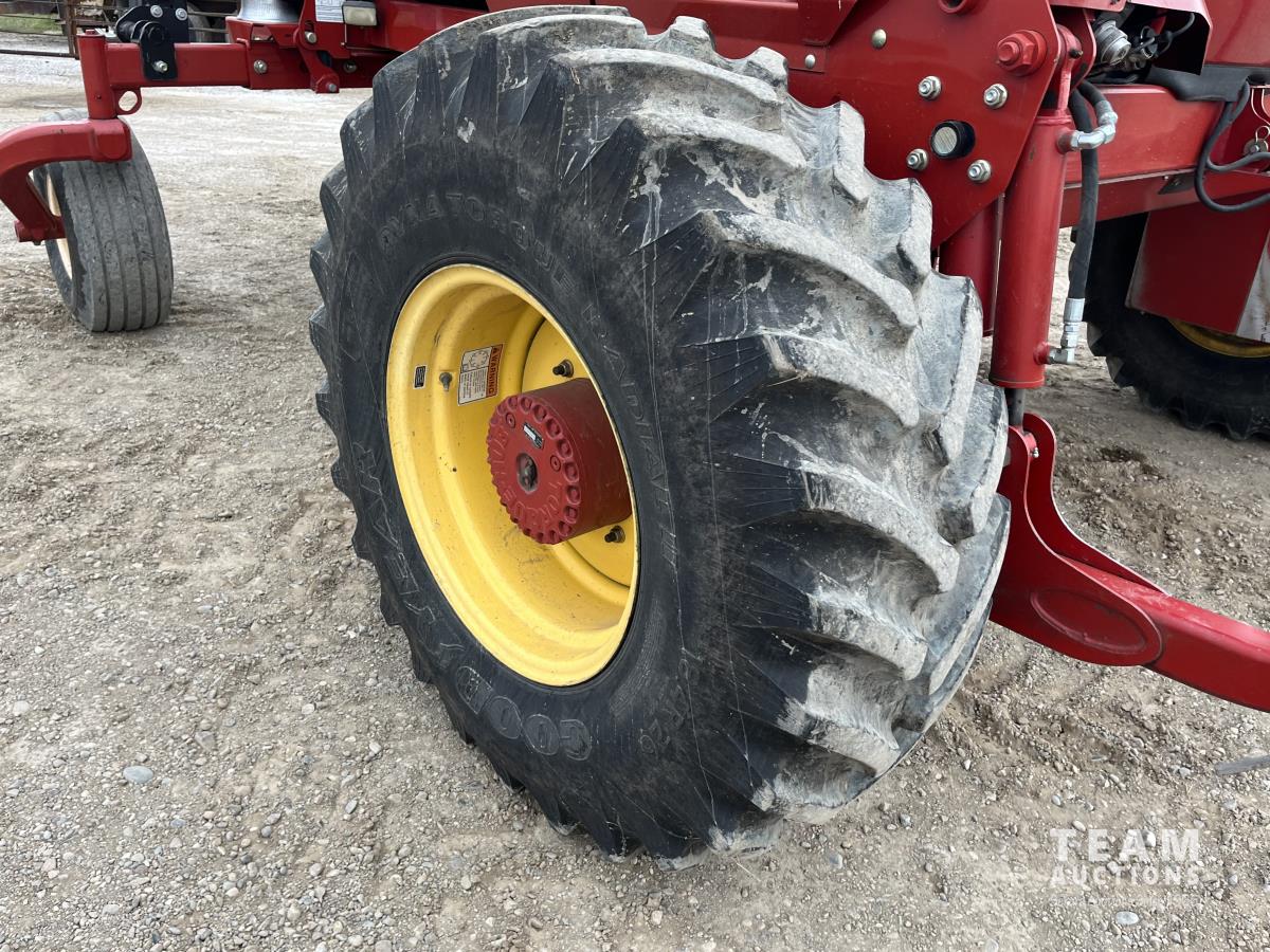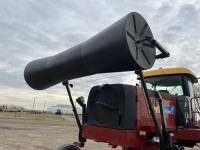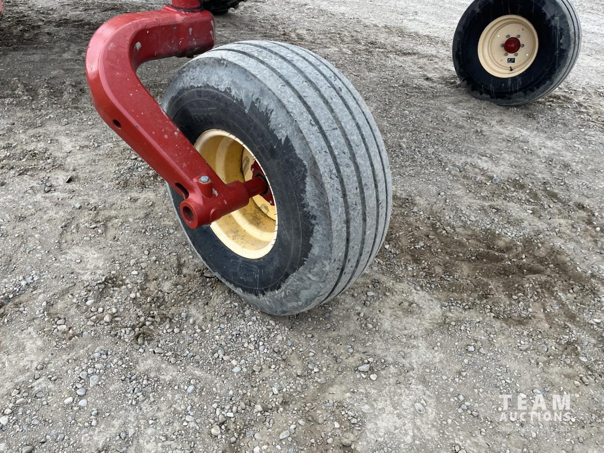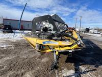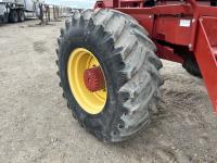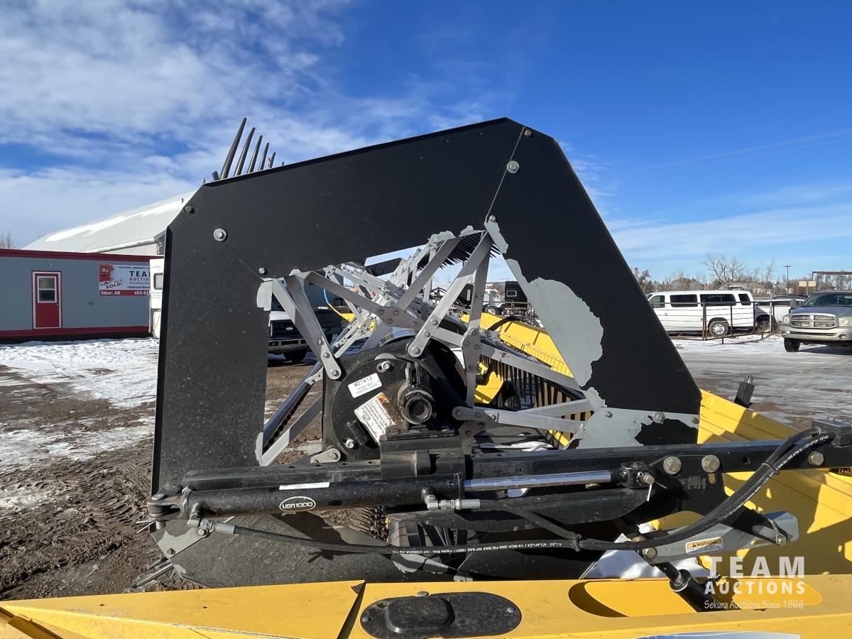 36 ft header, double knife drive, transport trailer w/ transport light kit, hydraulic fore & aft, poly tapered swath roller, 18.4R26 front, 14L-19.1 rear