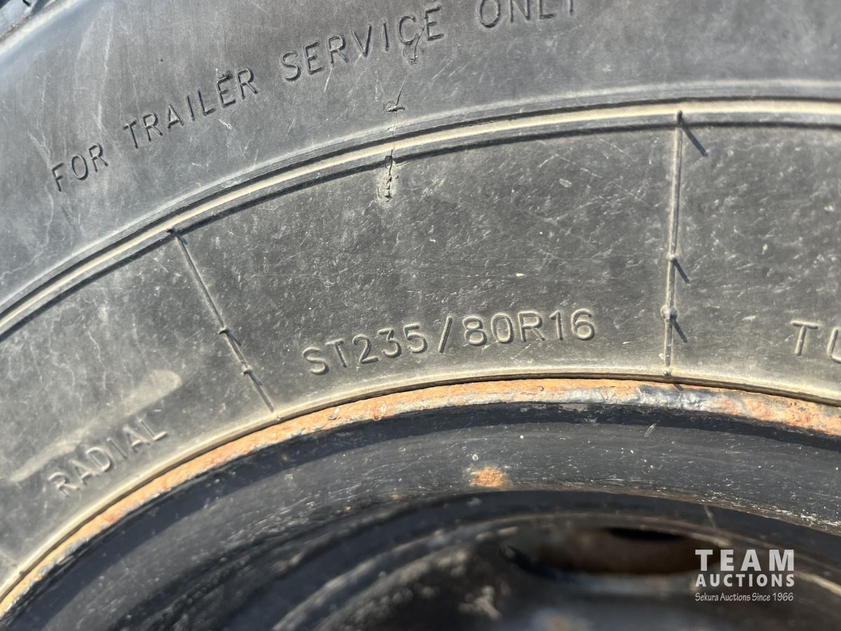 Pintle hitch, 8 ft 6 inch wide, 5 ft beavertail, fold down rampsSpring suspension, 235/80R16 tires
