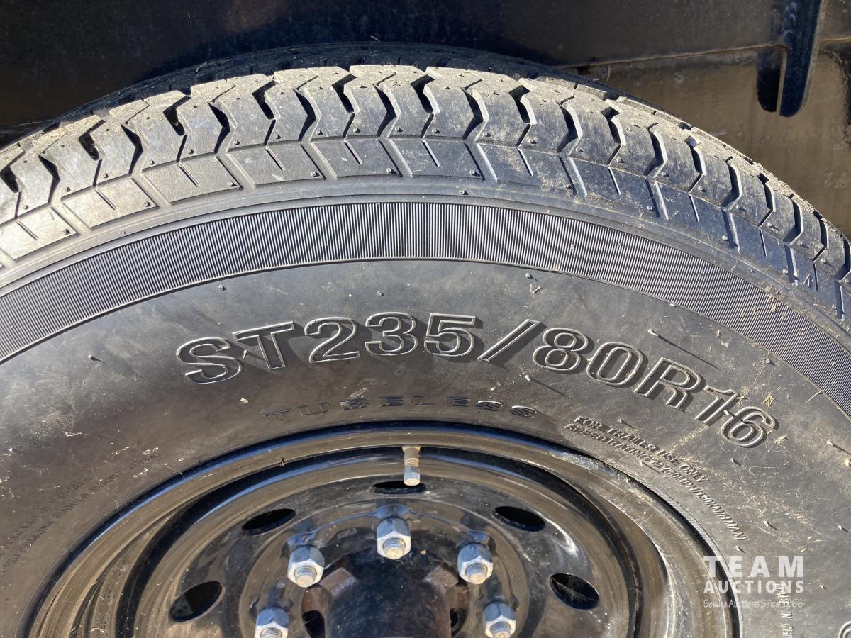 102 inch wide, 7000 lb axles, drive over fenders, 48 inch beavertail, pullout steel ramps, spring suspension, ST235/80R16 Tires