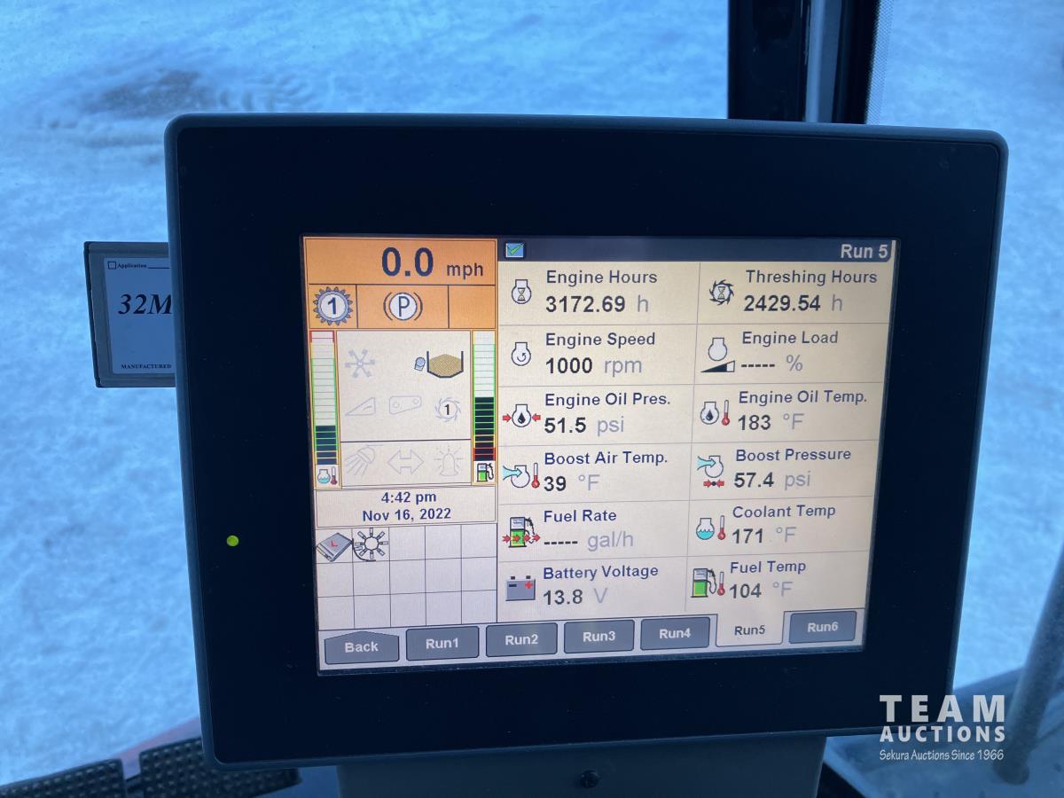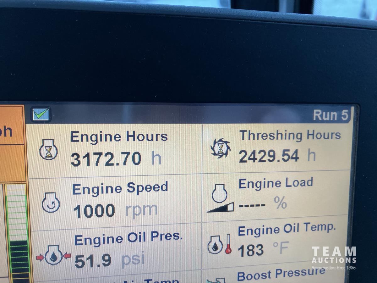 Variable speed reel, auto header height control, fore & aft, reverser, AFS pro 600, rock trap, grain tank extension, chaff spreader, fine cut chopper, 208R42 front duals, 600/65R28 rear tires, 2429 sep hrs showing