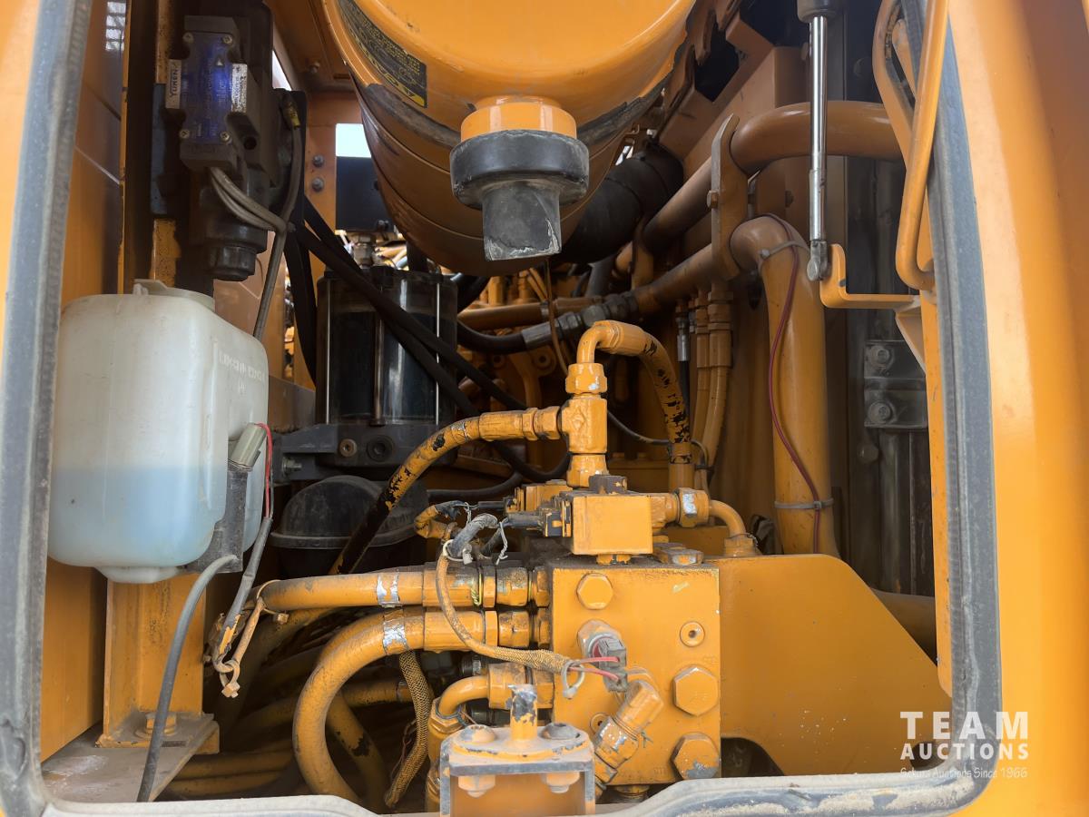 39 inch bucket, hydraulic thumb, 102 inch stick, aux hydraulics, backfill blade, 10.00-20