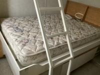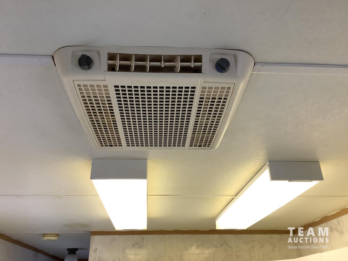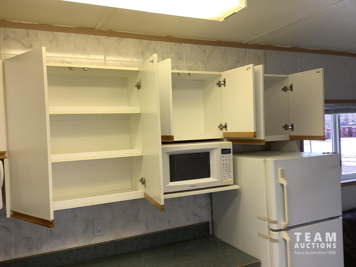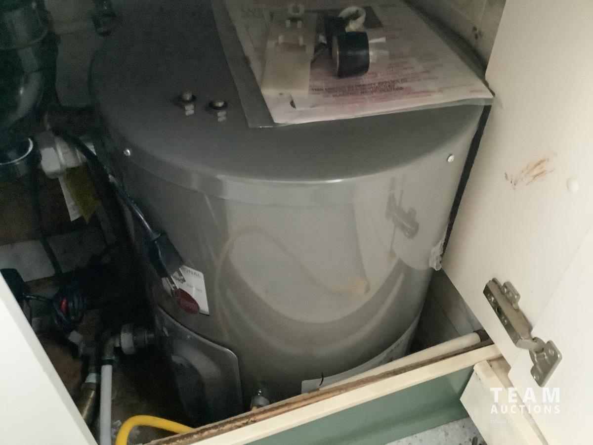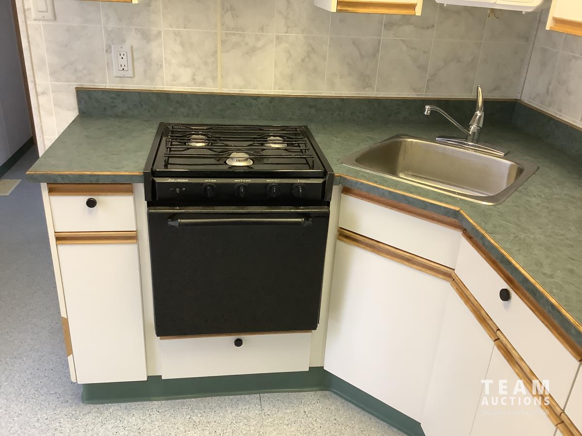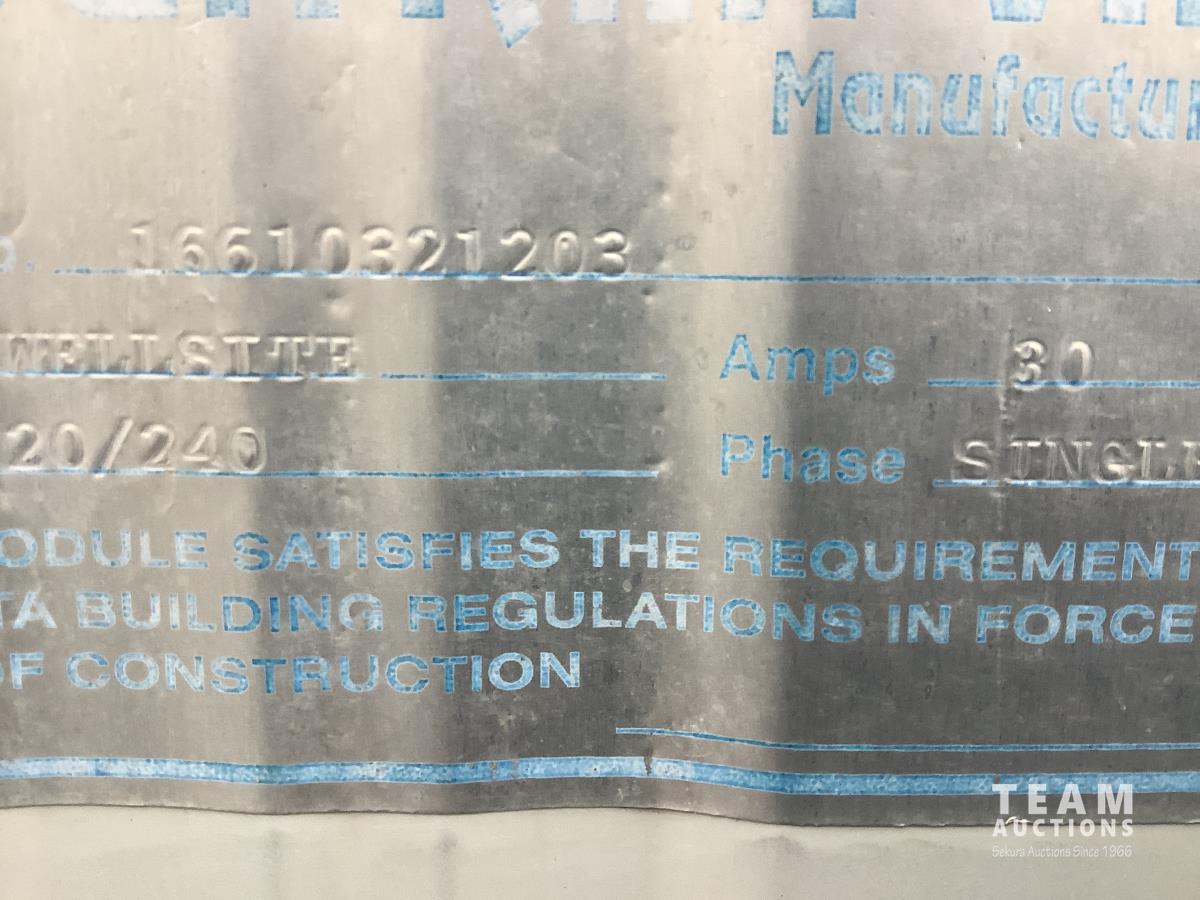 220 single Phase power, (2) Electric wall mount heaters, main large propane forced air furnace, AC, water storage tank, bed room with bunk beds, fridge, stove, microwave, coffee machine, central vac system, full bathroom with toilet, sink and shower, 8,000 lb axles with oil bath bearings, out door metal stairs, long electrical cord, air over hydraulic brakes, storage tool box, pintle hitch, 16 inch tires