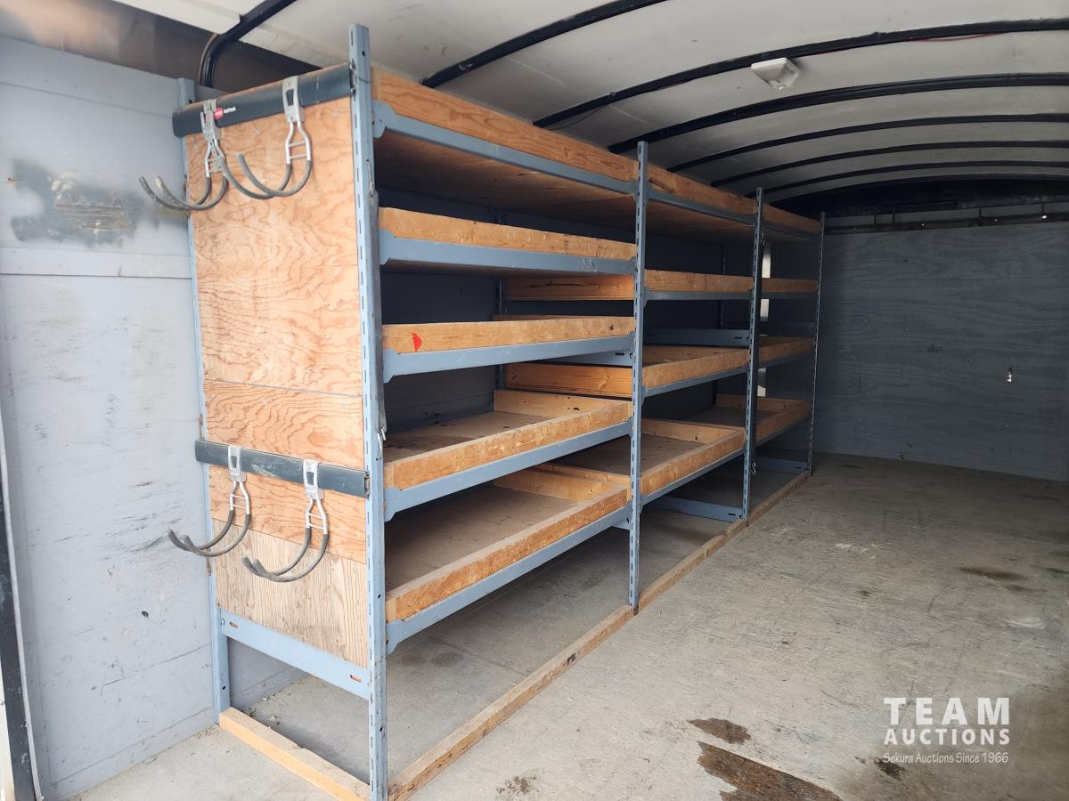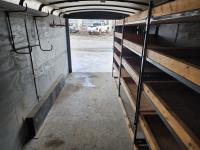 Spring suspension, 3500 lb axles, ball hitch, 83 inch wide, side man door, rear swing doors, shelving, 205/75R15 tires
