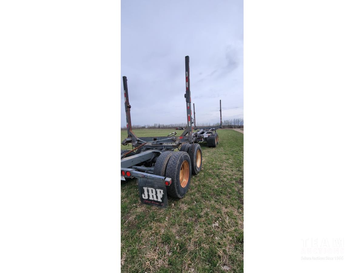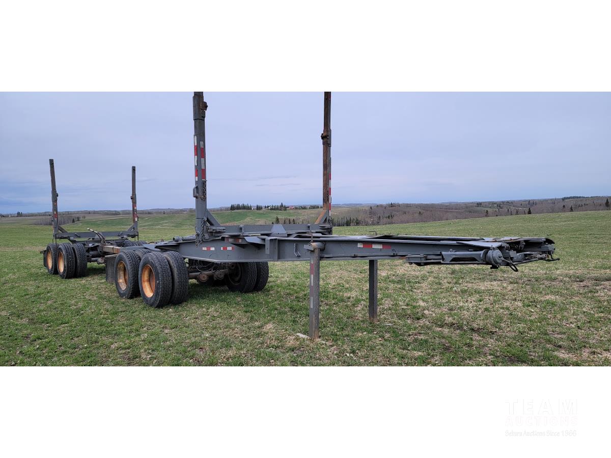 Front T/A trailer, air sliding 5TH adjustable wheel pin, 10 ft wide swivel log bunk with folding stacks, rear T/A telescopic pole with 8-1/2 ft wide log bunk with folding stacks, bud rims, 11R24.5 tires