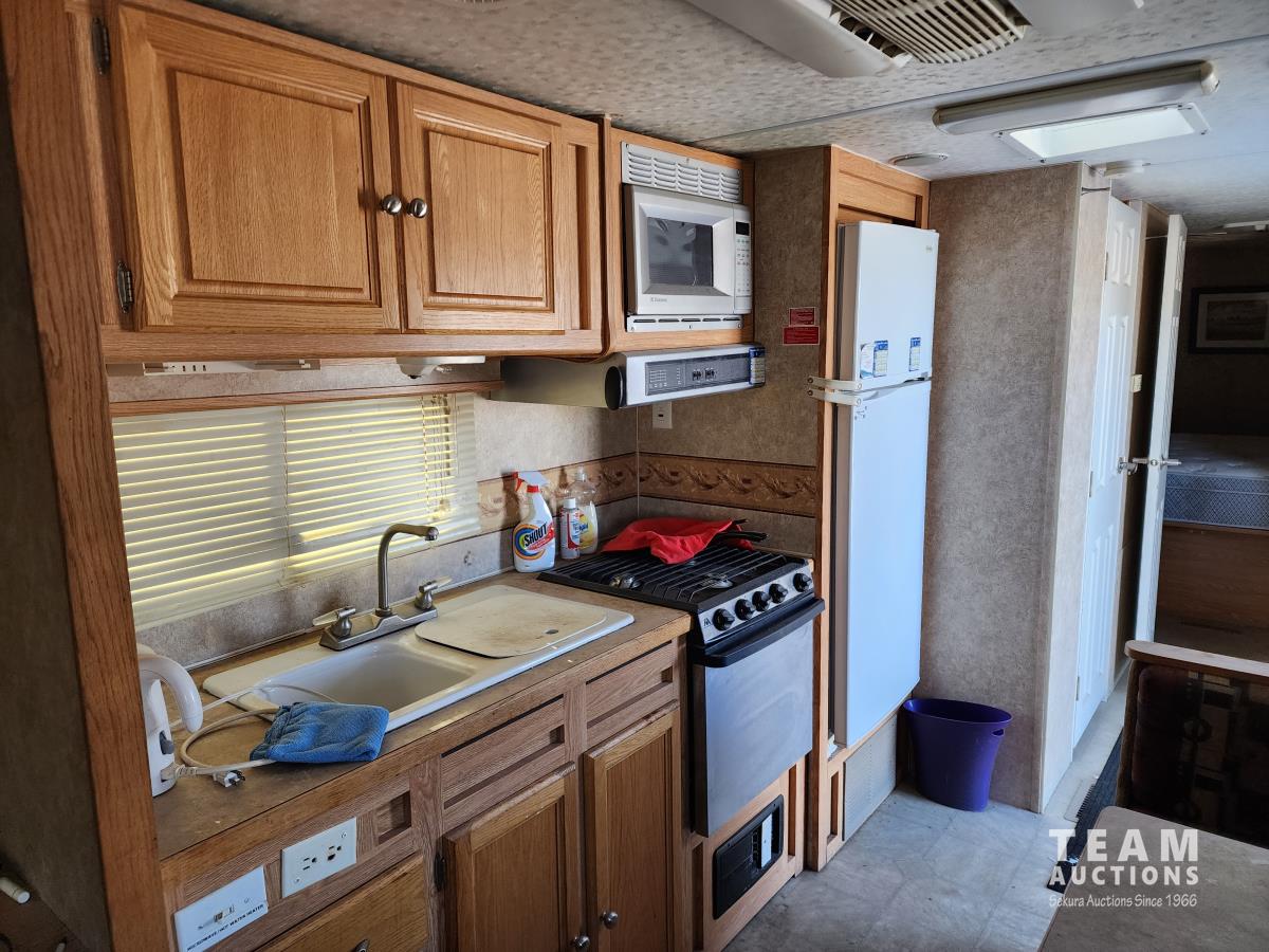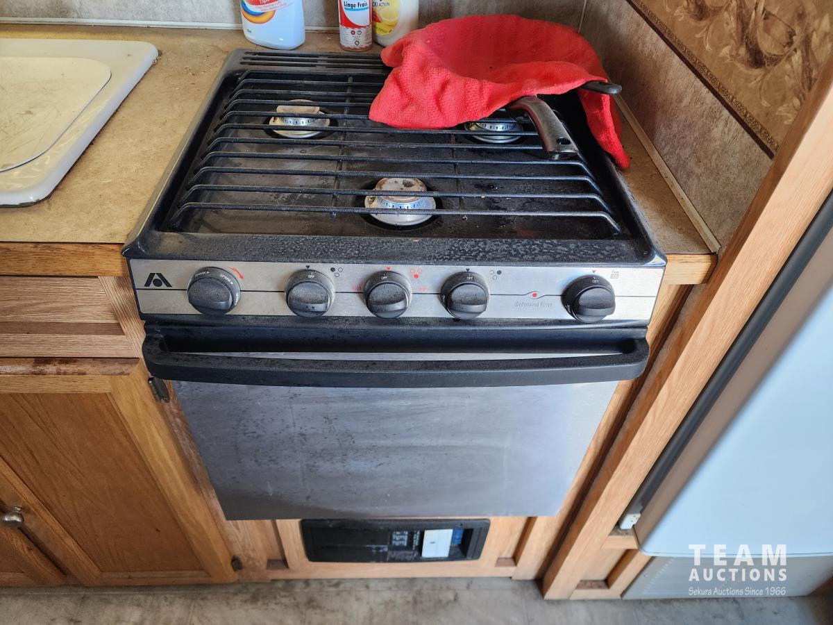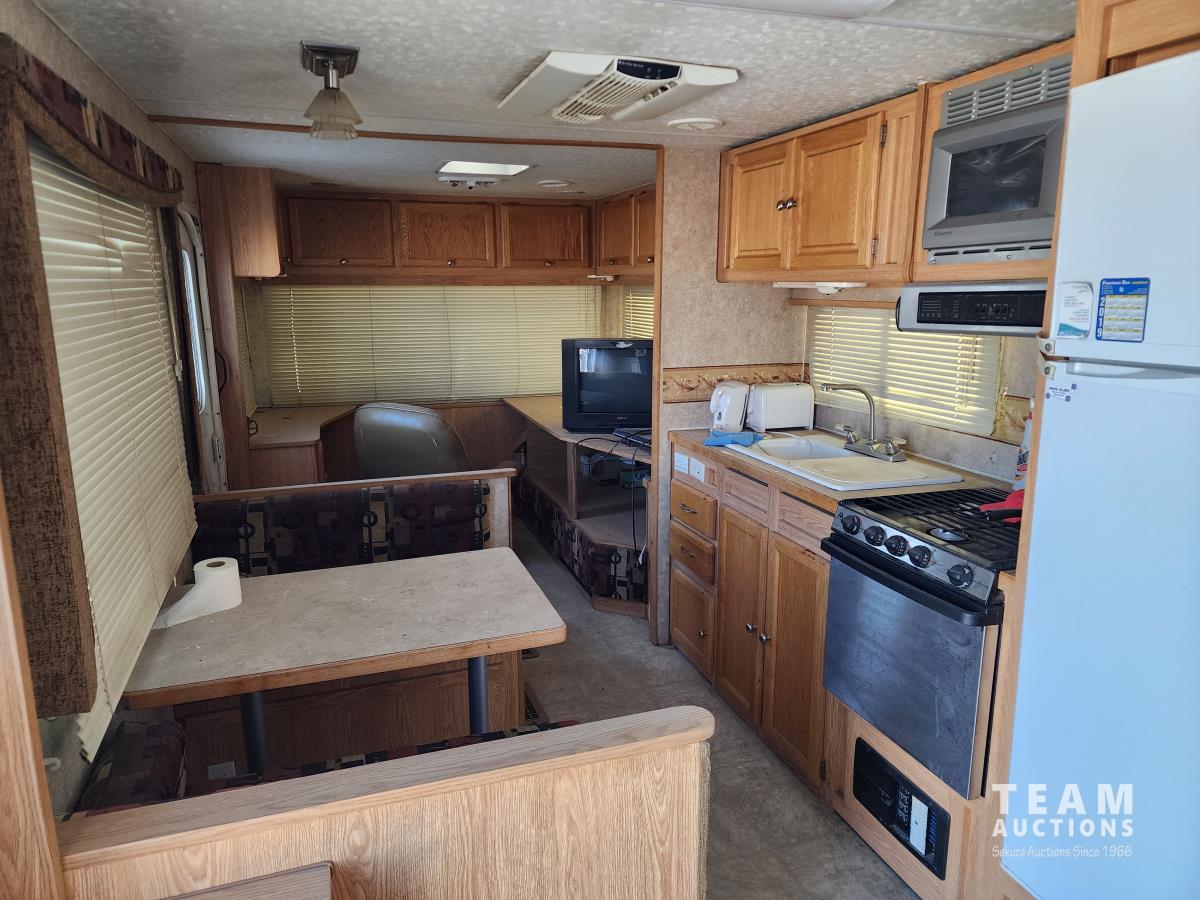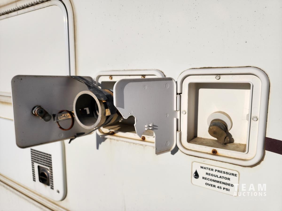 pintle hitch, propane pig, spring suspension, fridge, stove microwave, dinette, office area, bedroom, bathroom, washer/dry (untested), 235/80R16 tires