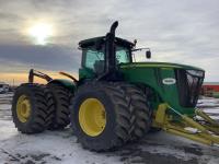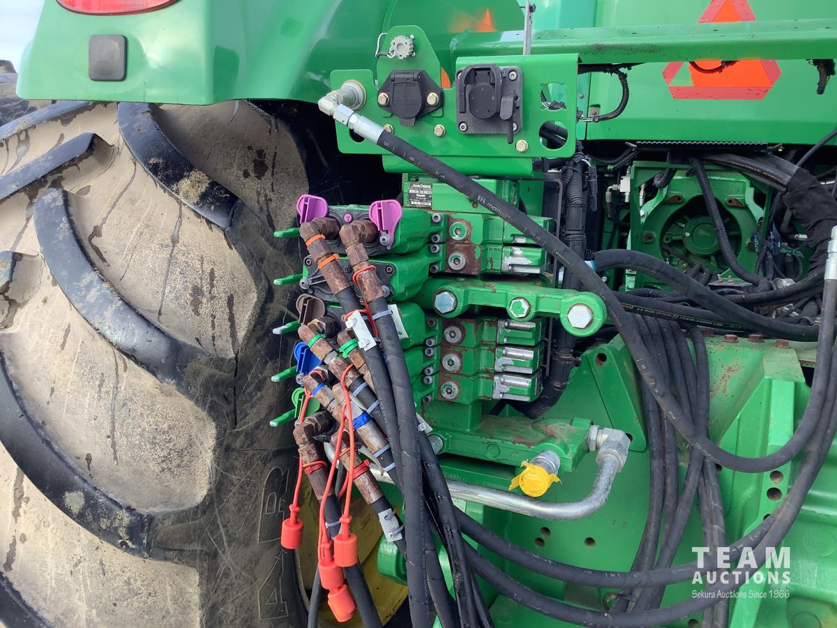 John Deere 13.5 L 460 HP diesel engine, 18 speed power shift transmission, cab, A/C, radio, buddy seat, rear wheel weights, differential lock, (5) rear remote hydraulic outlets, high flow hydraulics, premium cab package, HID light package, 2630 touch screen display, remote control mirrors, factory 800/70R38 duals