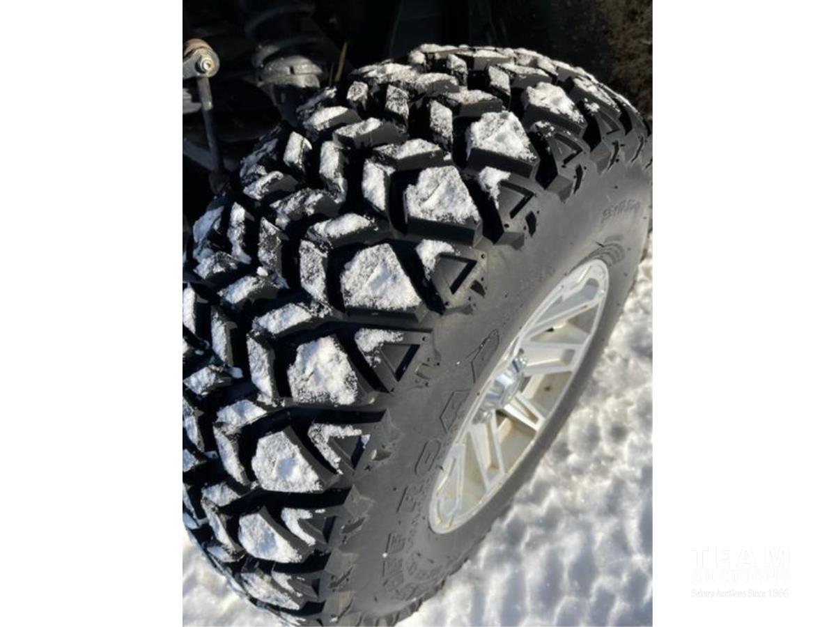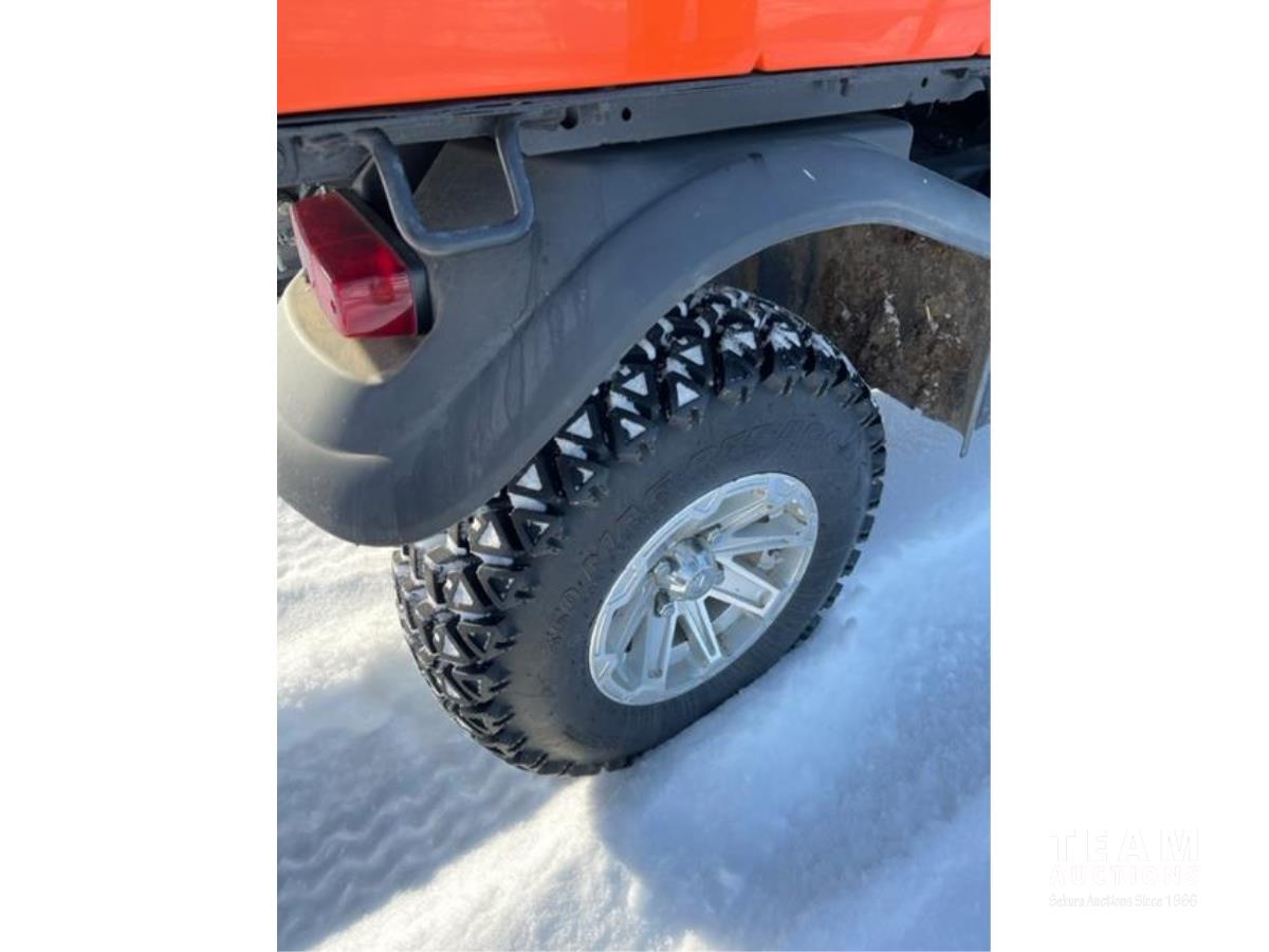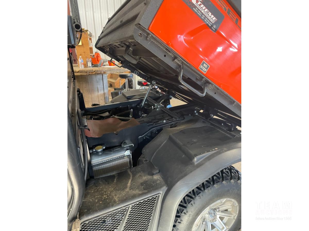 Diesel 3 cylinder liquid cooled engine, variable hydraulic transmission, differential lockers, front winch, front guard, power steering, full enclosed cab with heater, hydraulic dump box, front and rear extra cab mounted lights, alloy wheels with 25X10-12 ply tires
