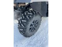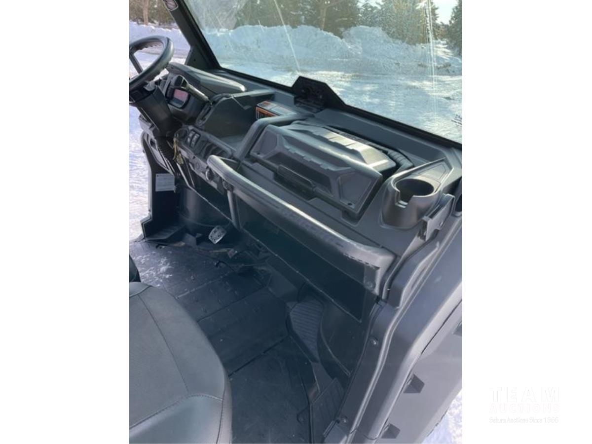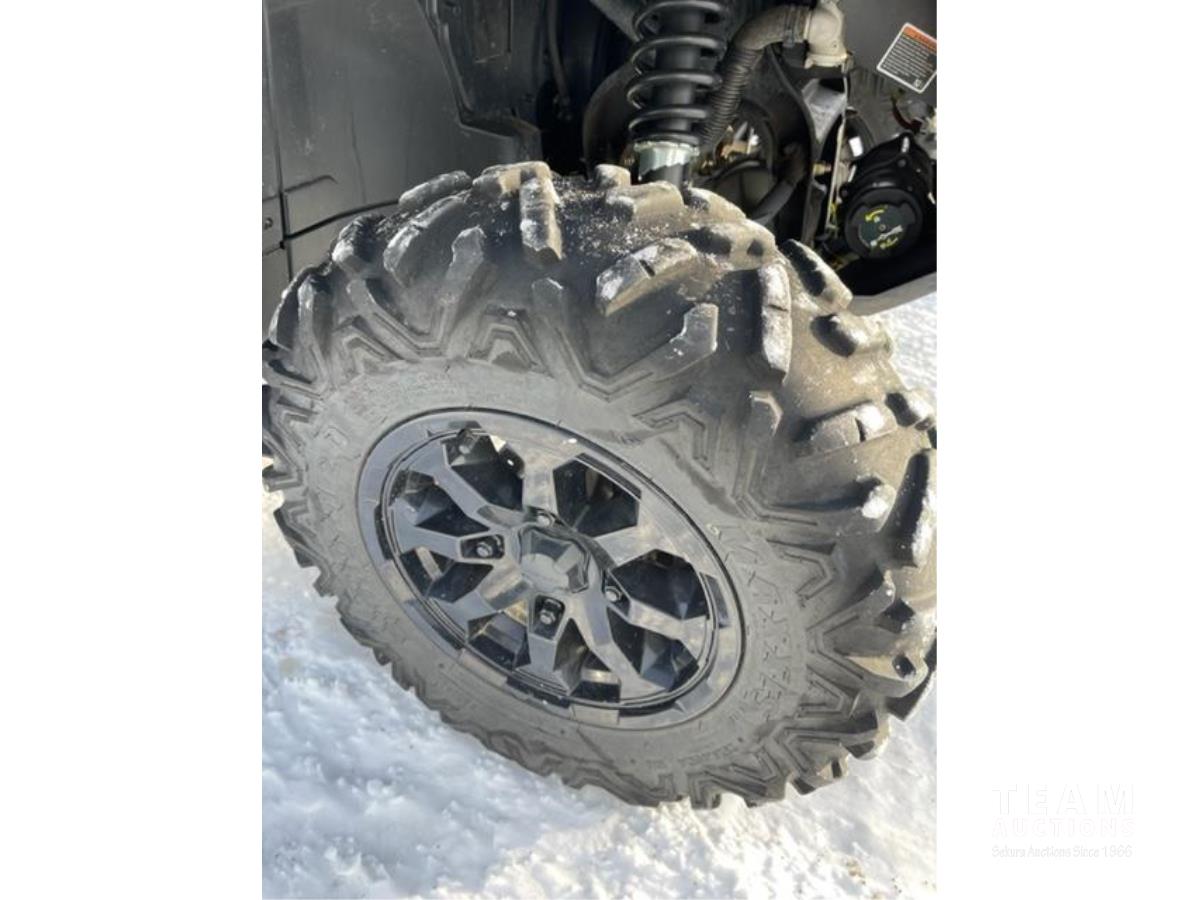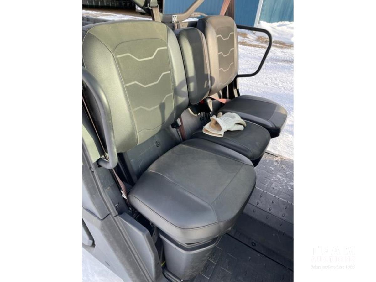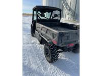 976 cc Rotax V twin 4-stroke liquid cooled fuel injected engine, ProTorque transmission with quick response system, 2 or 4 wheel drive, differential locks, hi-low and reverse, power steering, front bumper and winch, full bench seat, full canopy with front windshield, dump box, rear tow hitch, side wheel fairings, aluminum wheels, 28X11X14 inch tires