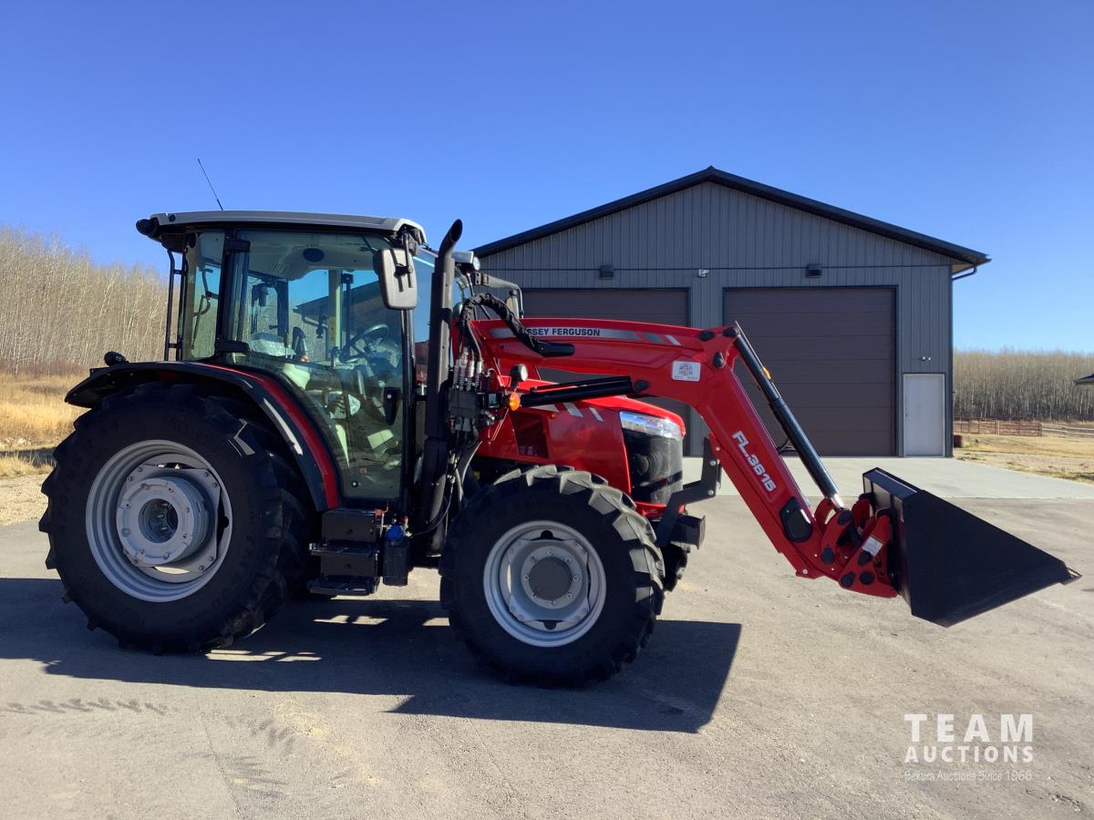 Massey Ferguson FL-3615 loader, Q/A Alo bucket, 3rd hydraulic at bucket, Q/A hydraulic coupler bank, grill guard, joystick, 3 cylinder 100 HP diesel engine, 12 speed transmission, left hand power shuttle, cab, heat, AC, buddy seat, sun roof, differential lock, 3 PT hitch, 540/1000 PTO, (2) sets of rear hydraulic couplers, rear weight package, 340/85R24 front & 420/85R34 rear tires, this tractor is being kept in a heated shop in Drayton Valley and will stay inside until buyer picks unit up. For viewing call Clayton