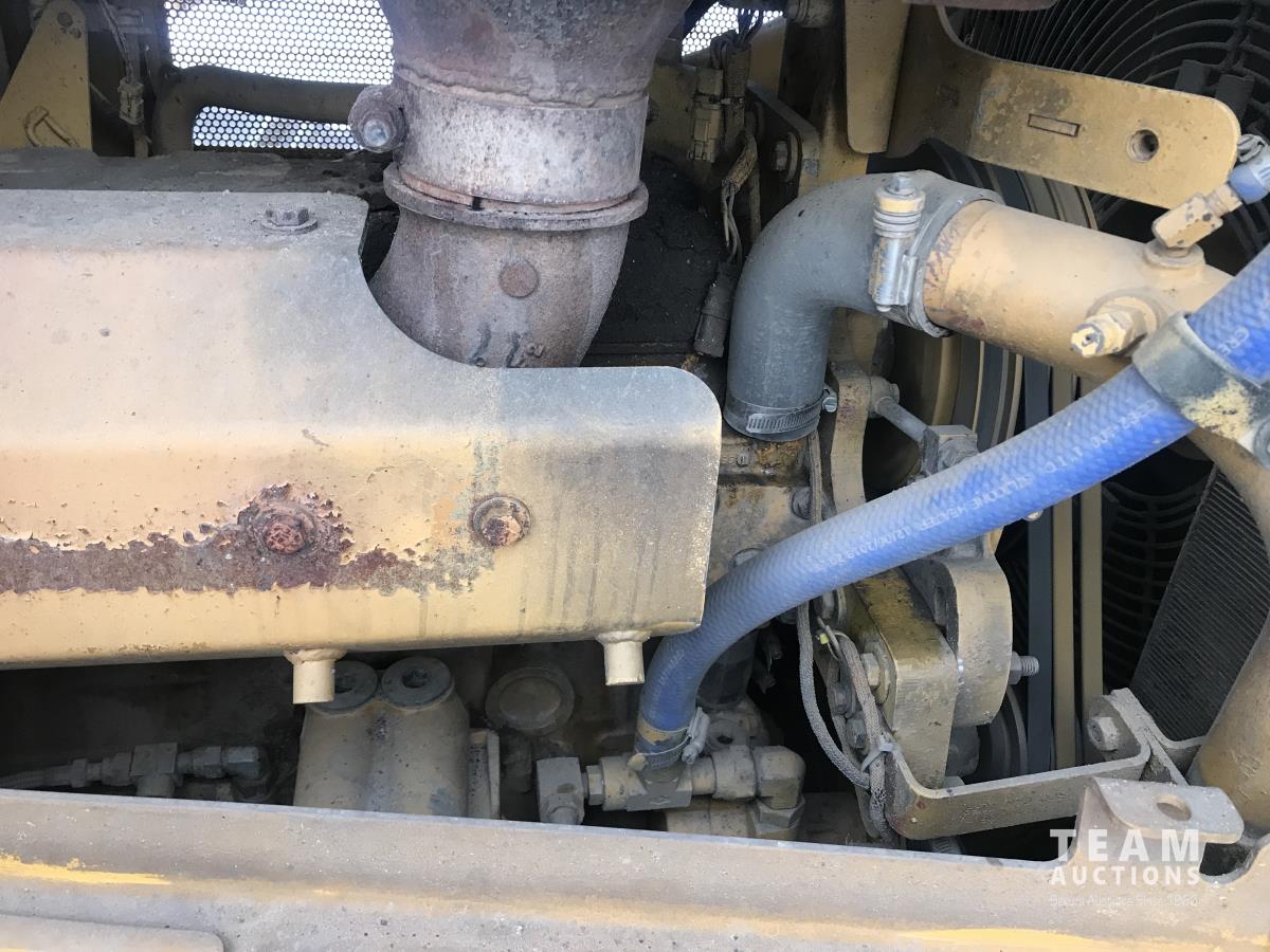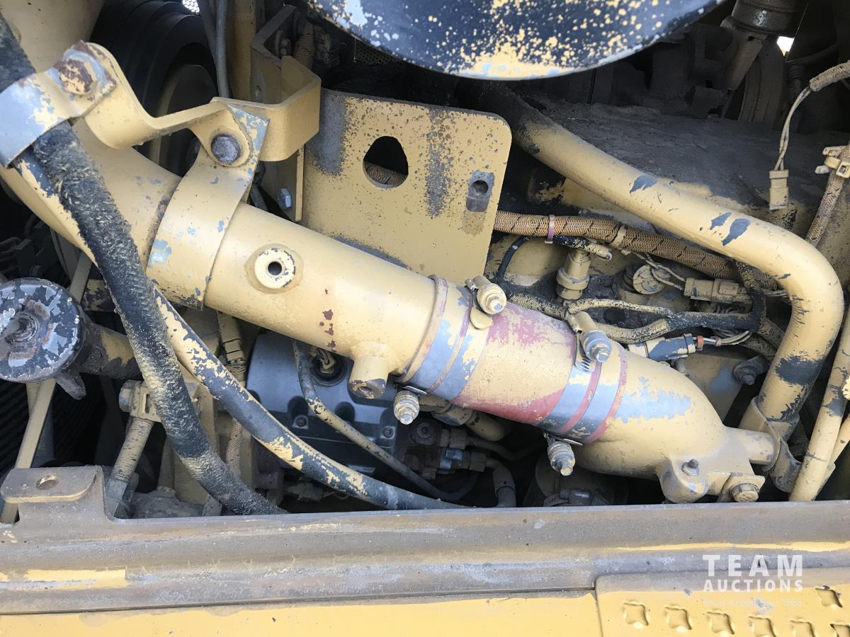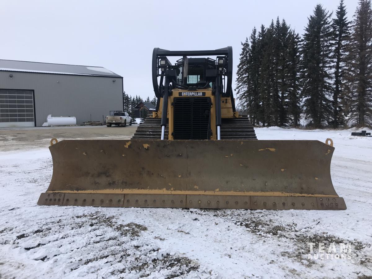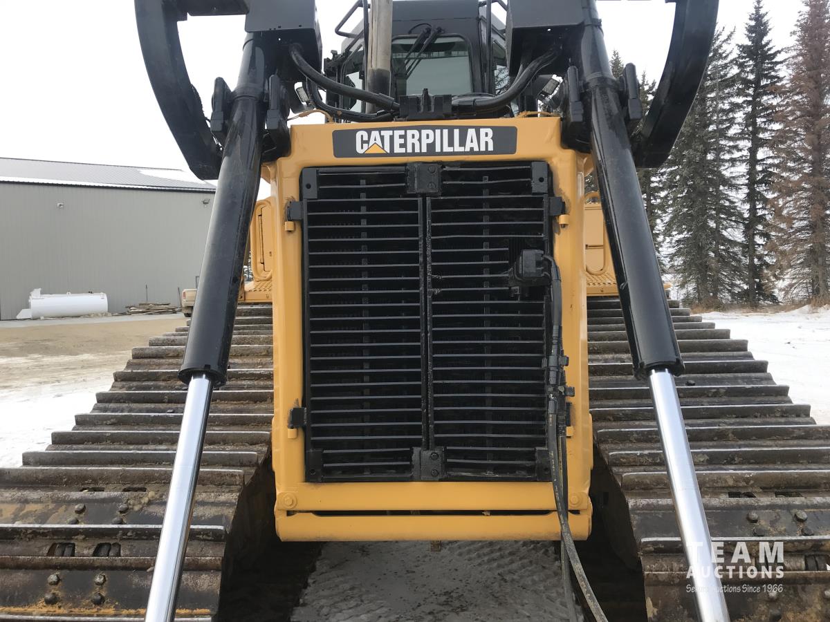 16 ft angle blade, twin tilt, brush rake kit, Caterpillar C9 engine, 3 power shift speed transmission, differential steering, sweep canopy, window screens, multi-shank ripper