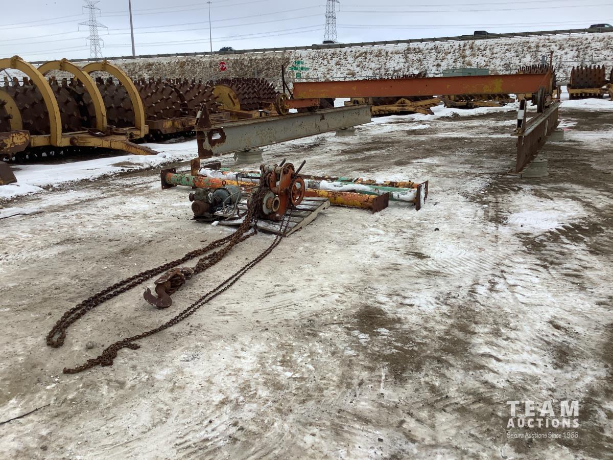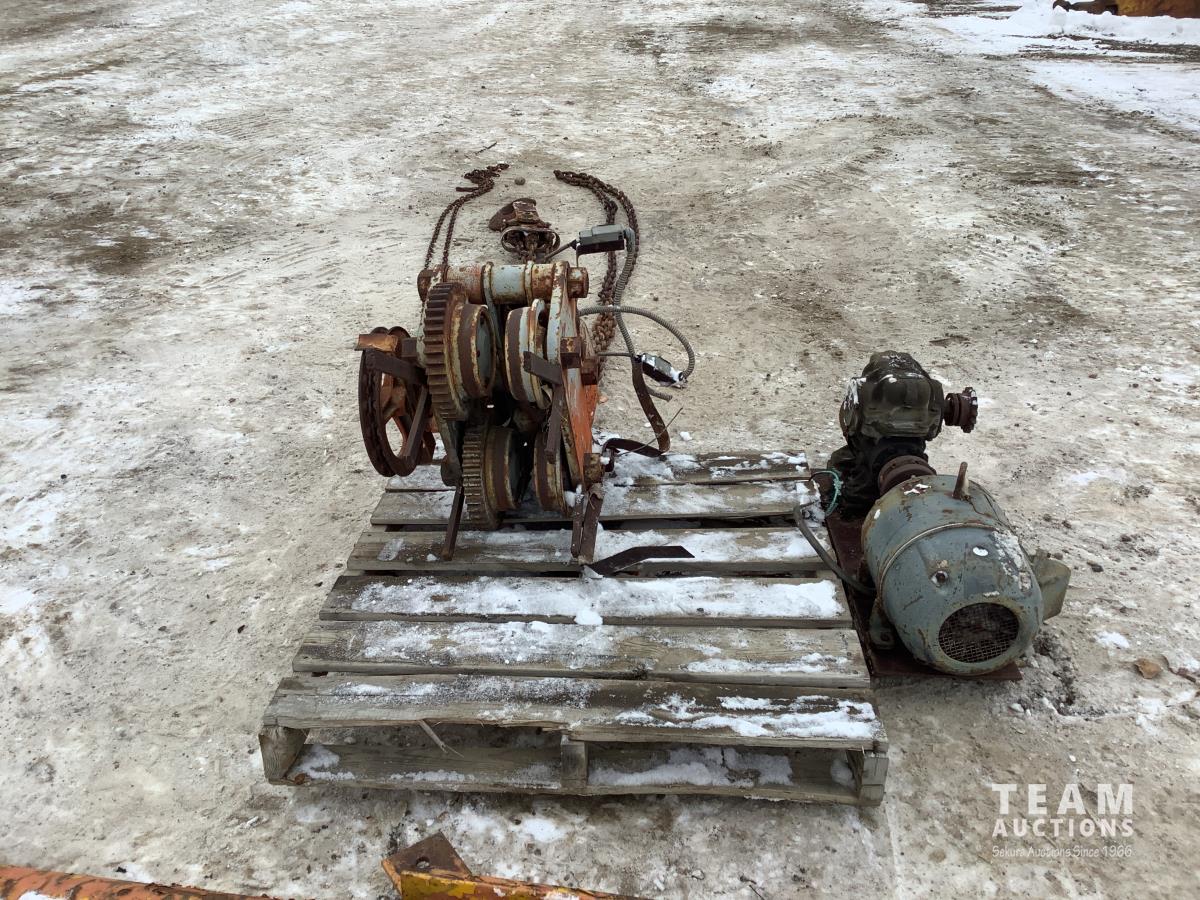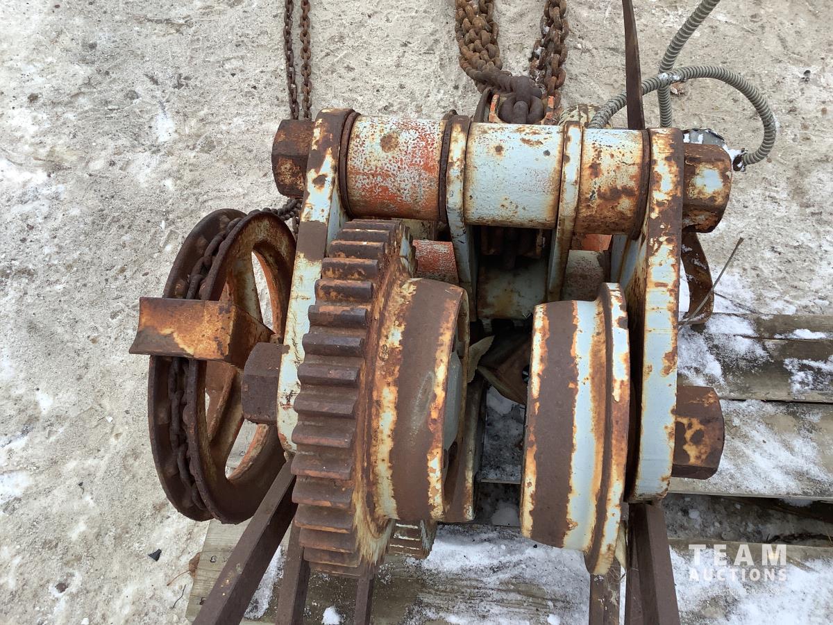 The chain hoist and electric motor are there but unsure if motor works. This hoist was removed several years ago from a shop and has not been setup since.