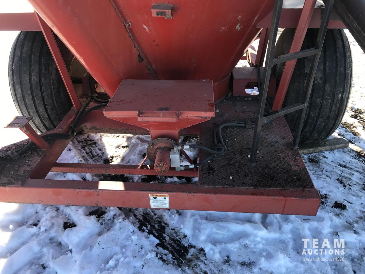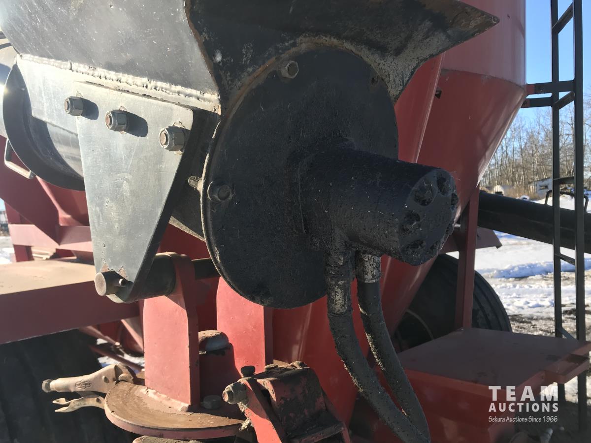 540 PTO, 24 inch barley rollers, load auger, discharge unloading auger and rear mineral load hopper, augers all hydraulic drive, 208 bushel, 263 cubic feet tank