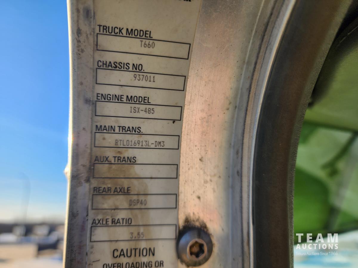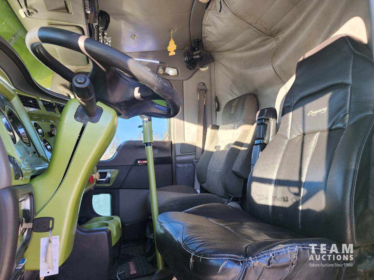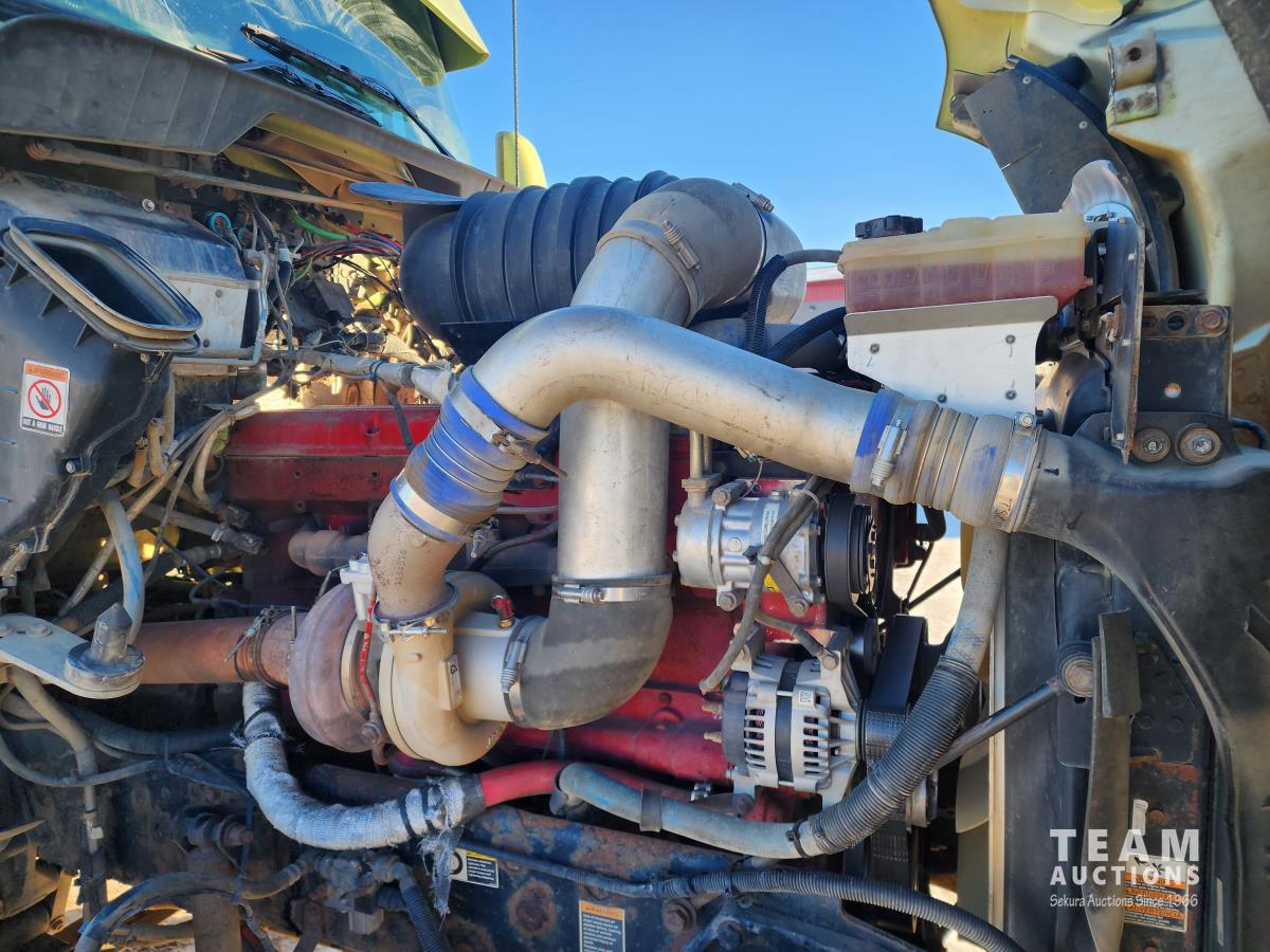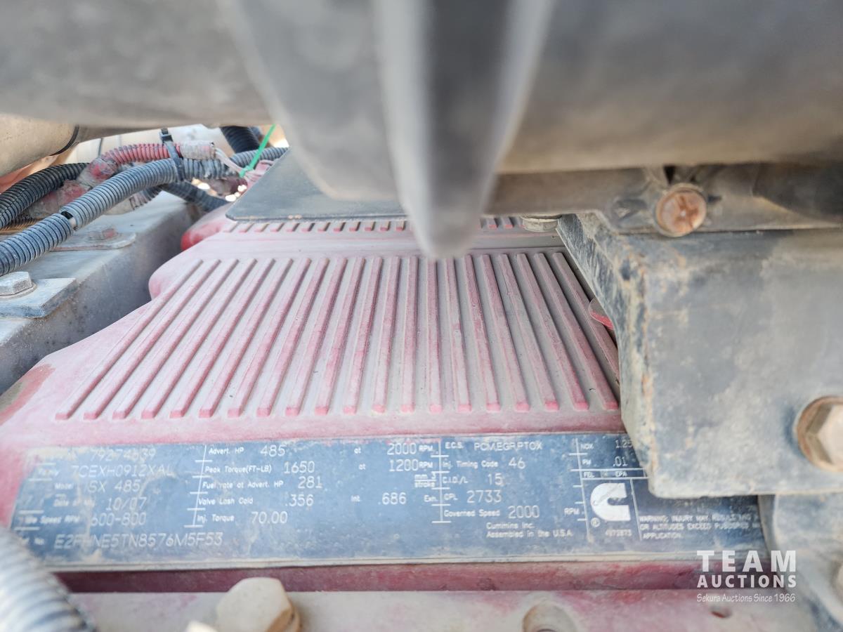 Cummins ISX 485 485 HP diesel engine, engine brake, diesel engine heater, Eaton Fuller 18 speed manual transmission, air suspension, 12,000 lb front axle, 40,000 lb rear axles, diff lock, 228 inch WB, A/C, 60 inch sleeper, fridge, moose bumper, Pro Heat, all aluminum wheels, 11R24.5 tires