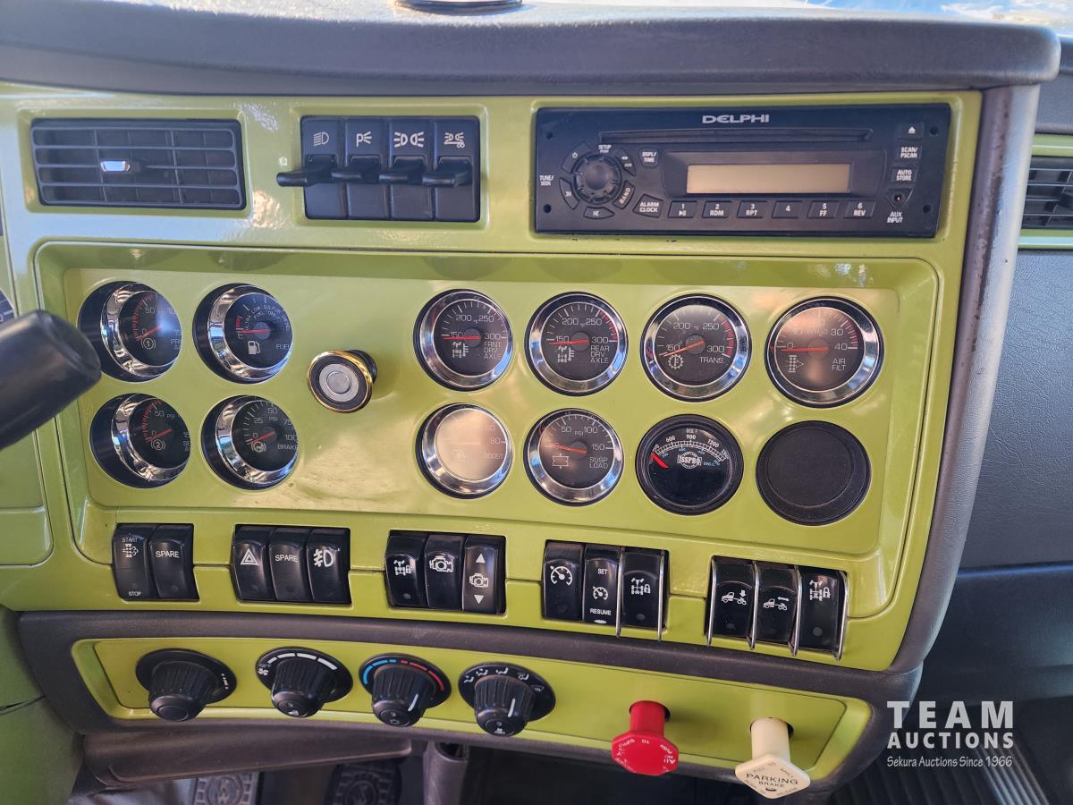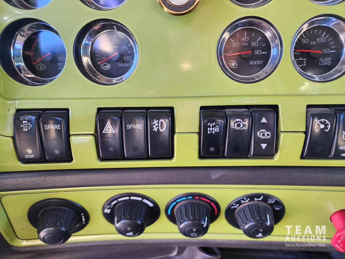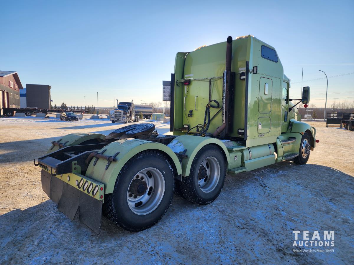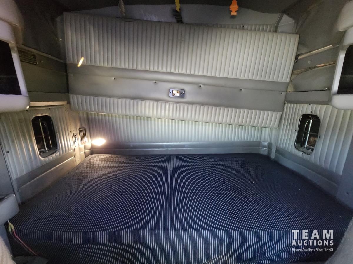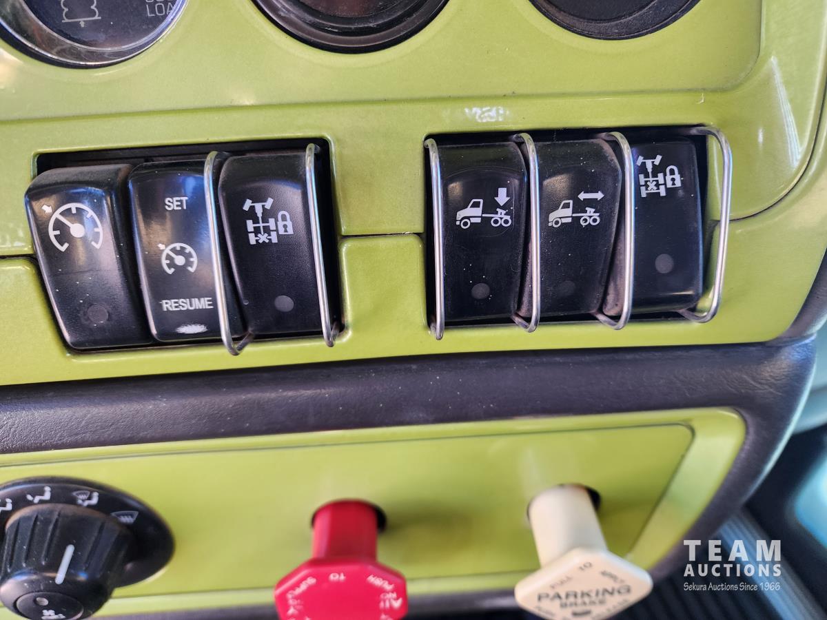 Cummins ISX 485 485 HP diesel engine, engine brake, diesel engine heater, Eaton Fuller 18 speed manual transmission, air suspension, 12,000 lb front axle, 40,000 lb rear axles, diff lock, 228 inch WB, A/C, 60 inch sleeper, fridge, moose bumper, Pro Heat, all aluminum wheels, 11R24.5 tires