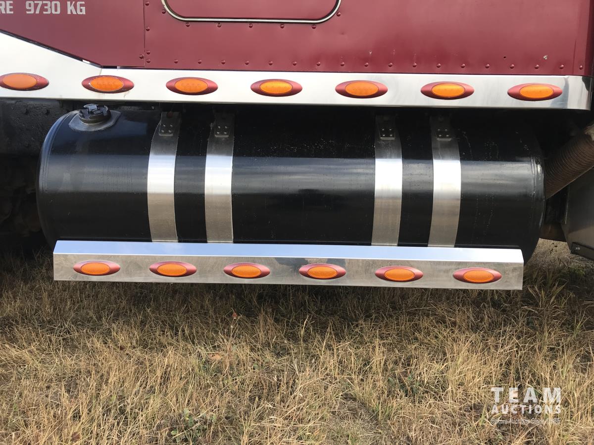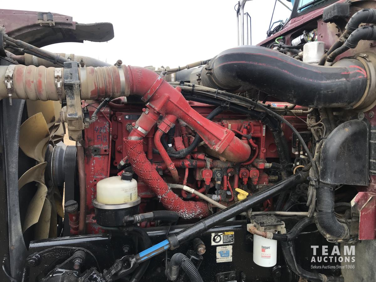 Cummins ISX 530 HP 14 L engine, engine brake, air ride suspension, full emissions delete, 18 speed transmission, 12,000 lb front axle, 40,000 lb rears, full lockers, 3.91 ratio, wet kit, air sliding 5TH wheel, LED backup lights, half rear fenders, moose bumper, air dryer, full chromed gauge package, 110 volt power invertor, 11R24.5 tires