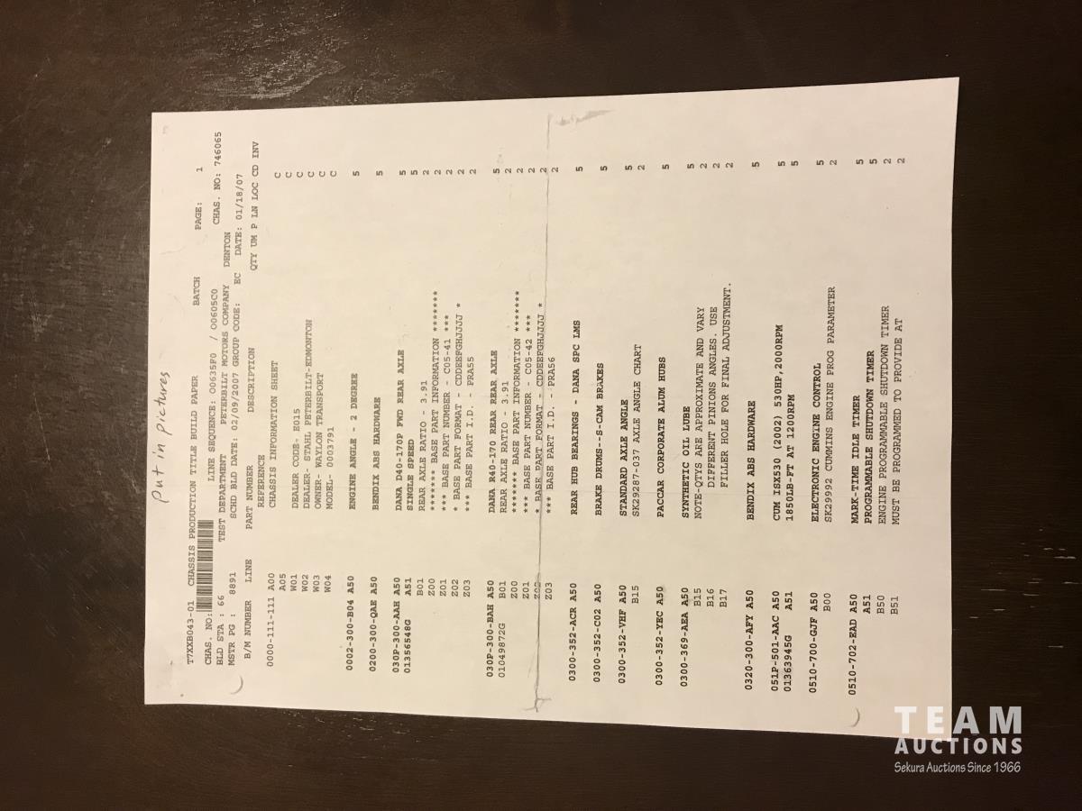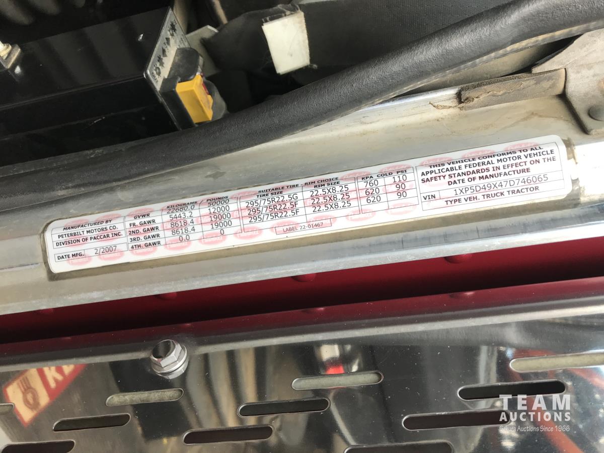164 2007 Peterbilt 379 T/A Sleeper Truck Tractor