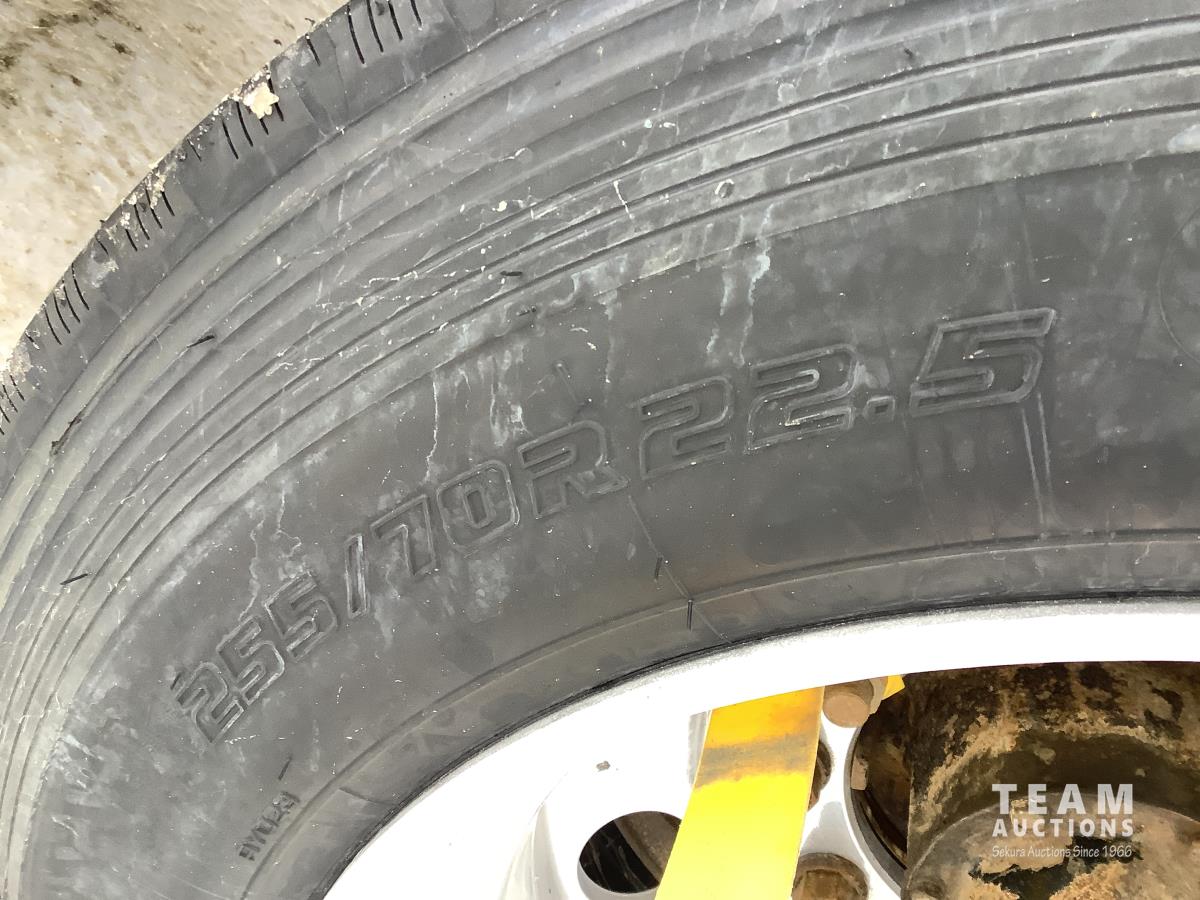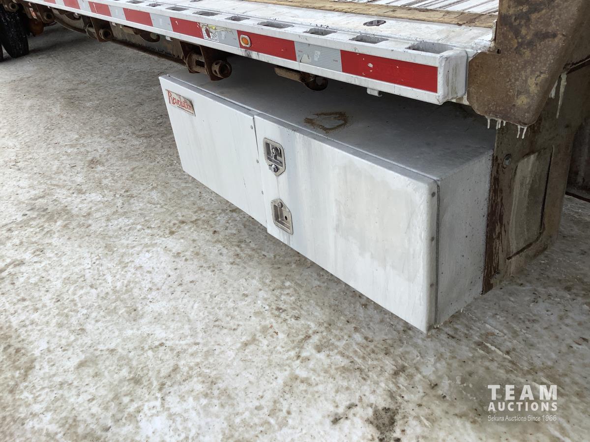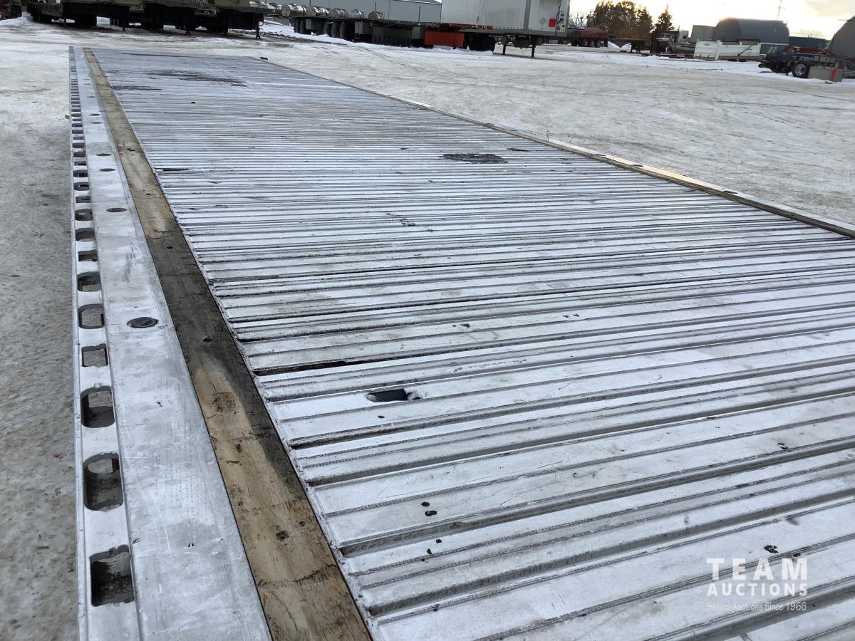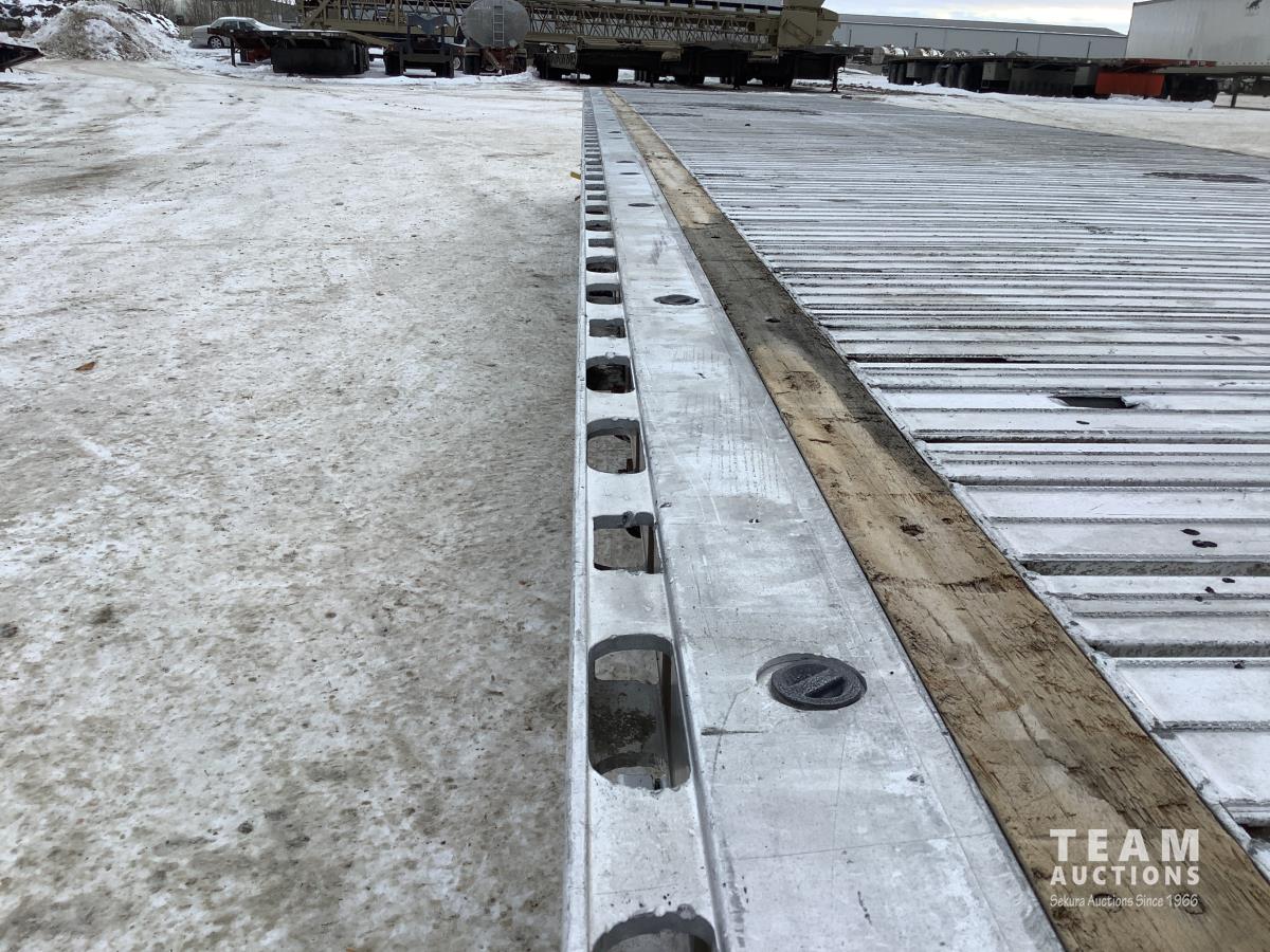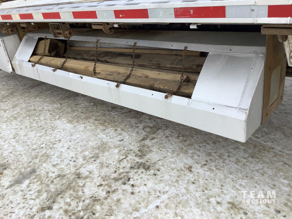 Air ride suspension, 3-bar sliding winches and J hooks, chain pull-ups on deck, (2) tool boxes, dunnage box, heavy duty tie down pockets, all LED lights, all aluminum rims, 255/70R22.5 tires