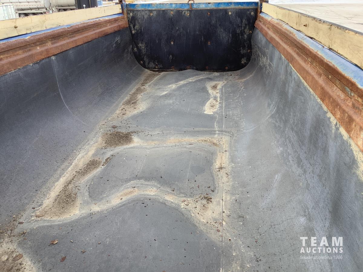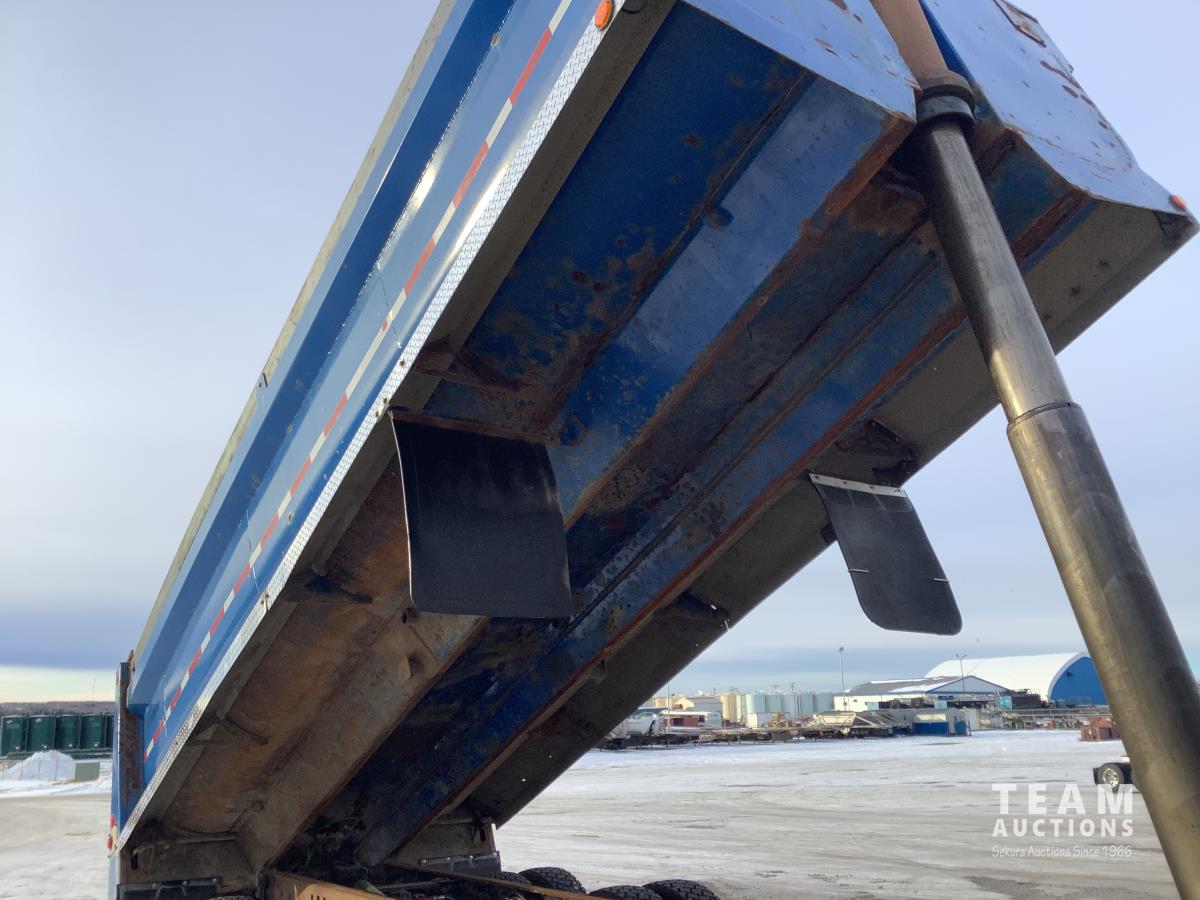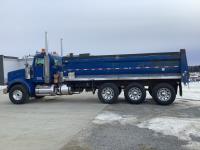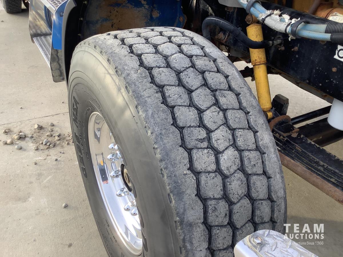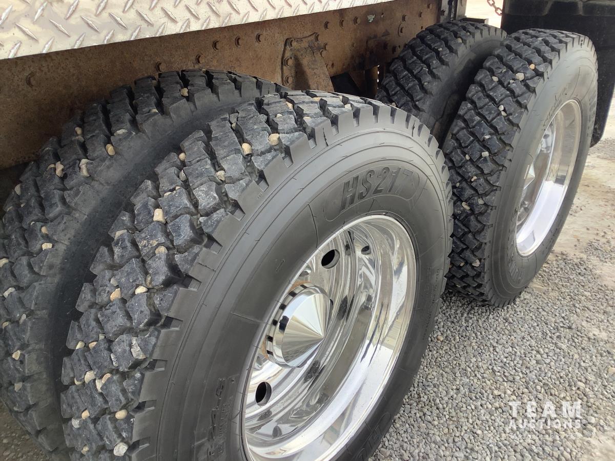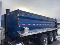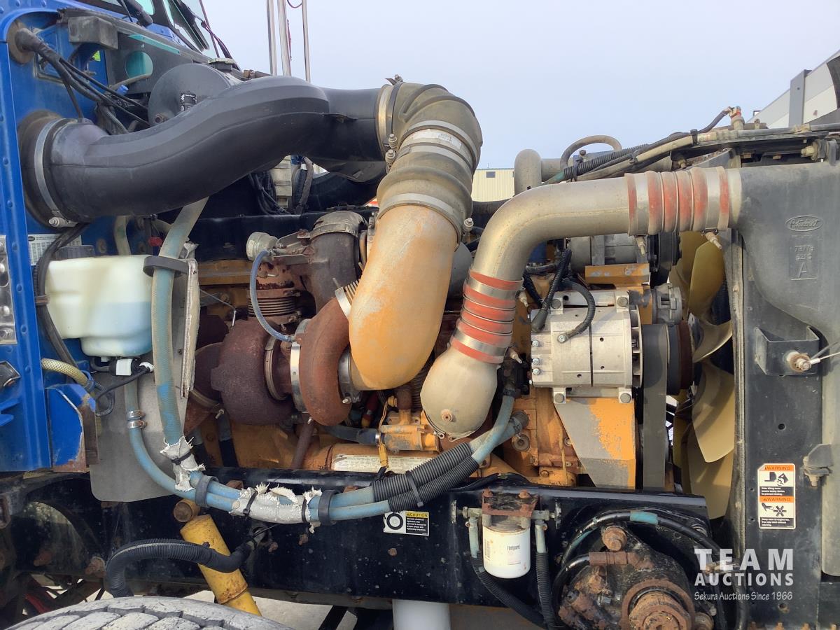 Caterpillar Pre Emission NXS22720 15.2 L 6 cylinder 500 HP diesel engine, engine brake, Fuller 18 speed manual transmission, air suspension, 20,000 lb front axle, full lockers, Roda air shut off, front tow hook, rear tool box, Midland 20 ft gravel box with sealed tail gate, rear hitch, all aluminum wheels, 445/65R22 front tires, 11R24.5 rear tires