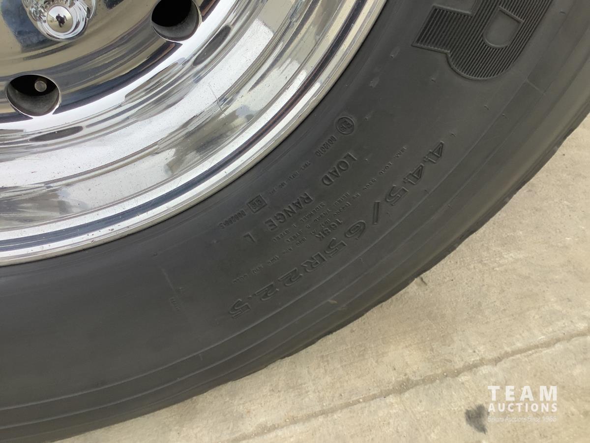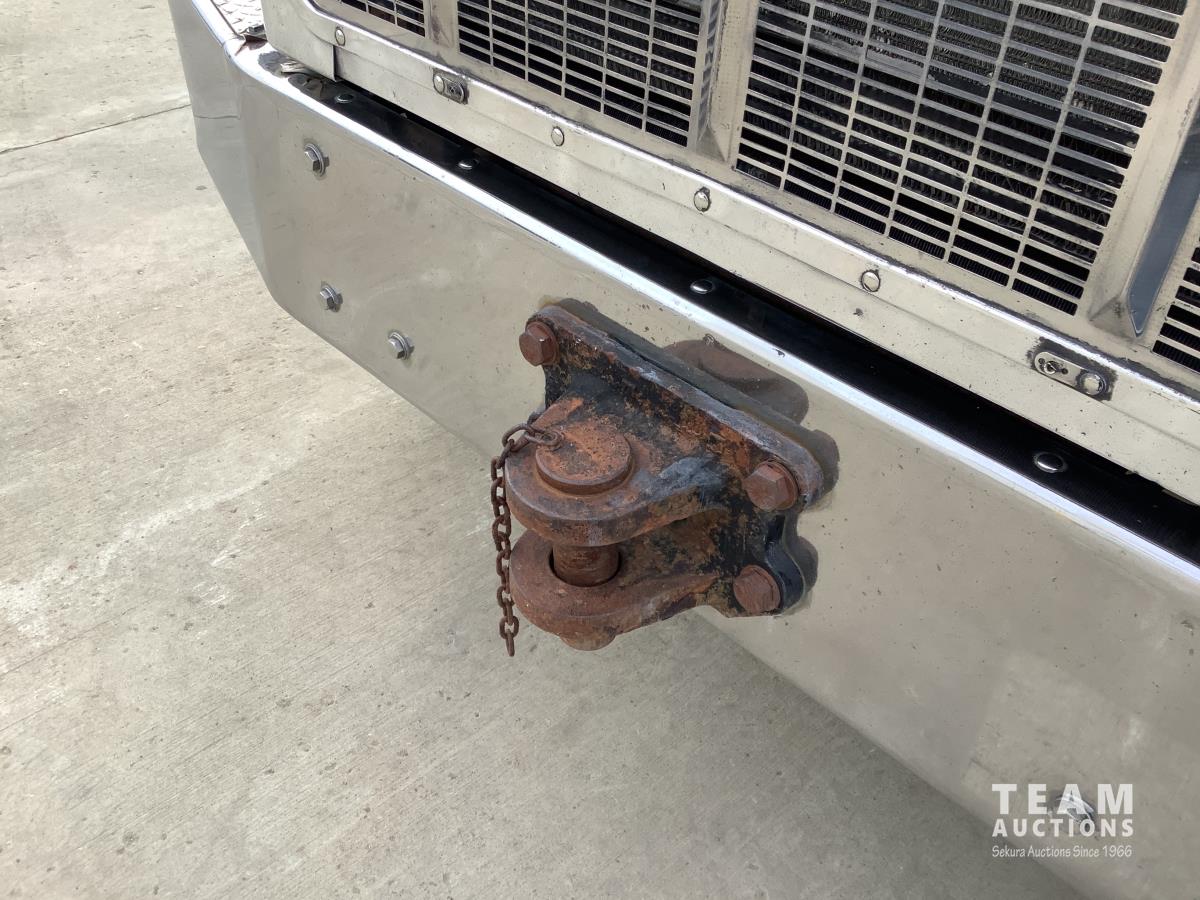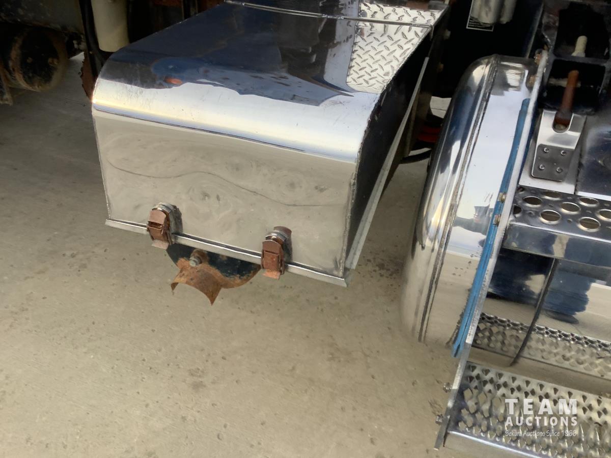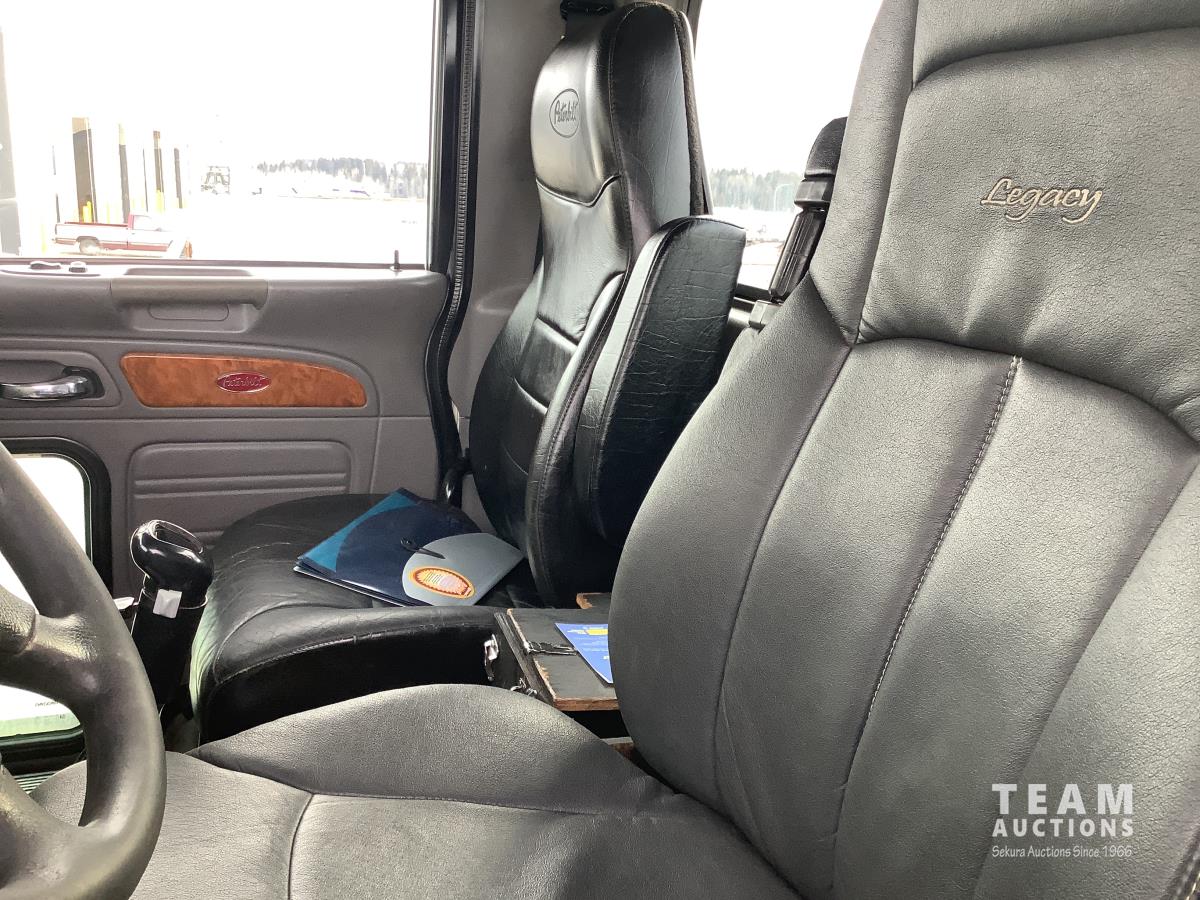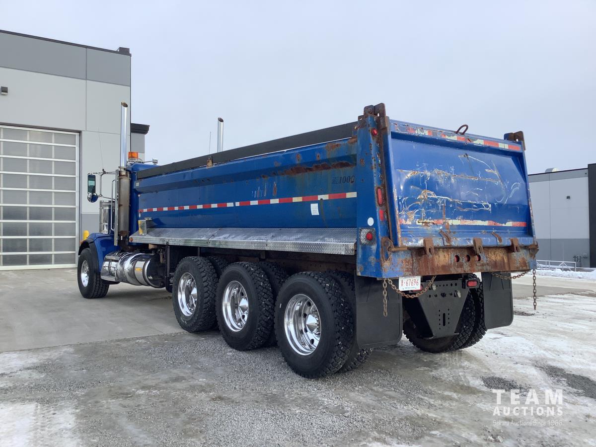 Caterpillar Pre Emission NXS22720 15.2 L 6 cylinder 500 HP diesel engine, engine brake, Fuller 18 speed manual transmission, air suspension, 20,000 lb front axle, full lockers, Roda air shut off, front tow hook, rear tool box, Midland 20 ft gravel box with sealed tail gate, rear hitch, all aluminum wheels, 445/65R22 front tires, 11R24.5 rear tires