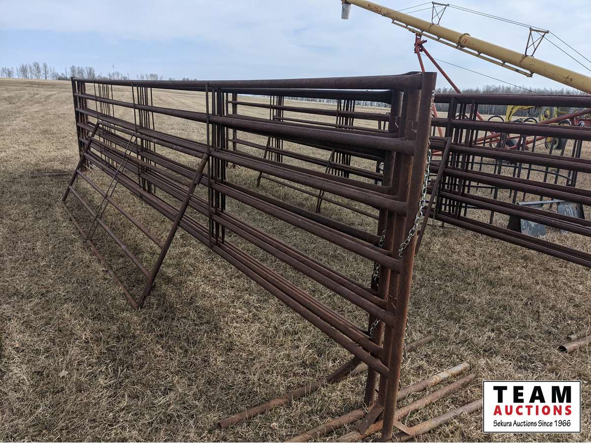 367 (2) 24 Ft Free Standing 6 Bar Panels, (1) 24 Ft Freestanding Panels with 12 Ft Gate