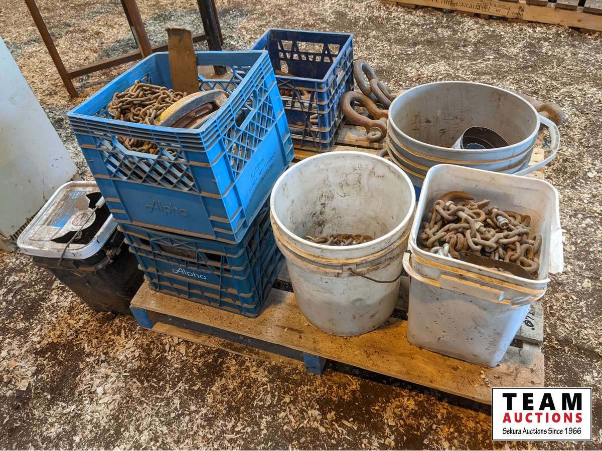 84 (2) Chain Hoists, Cable Hoist, Chains & Metal Pieces
