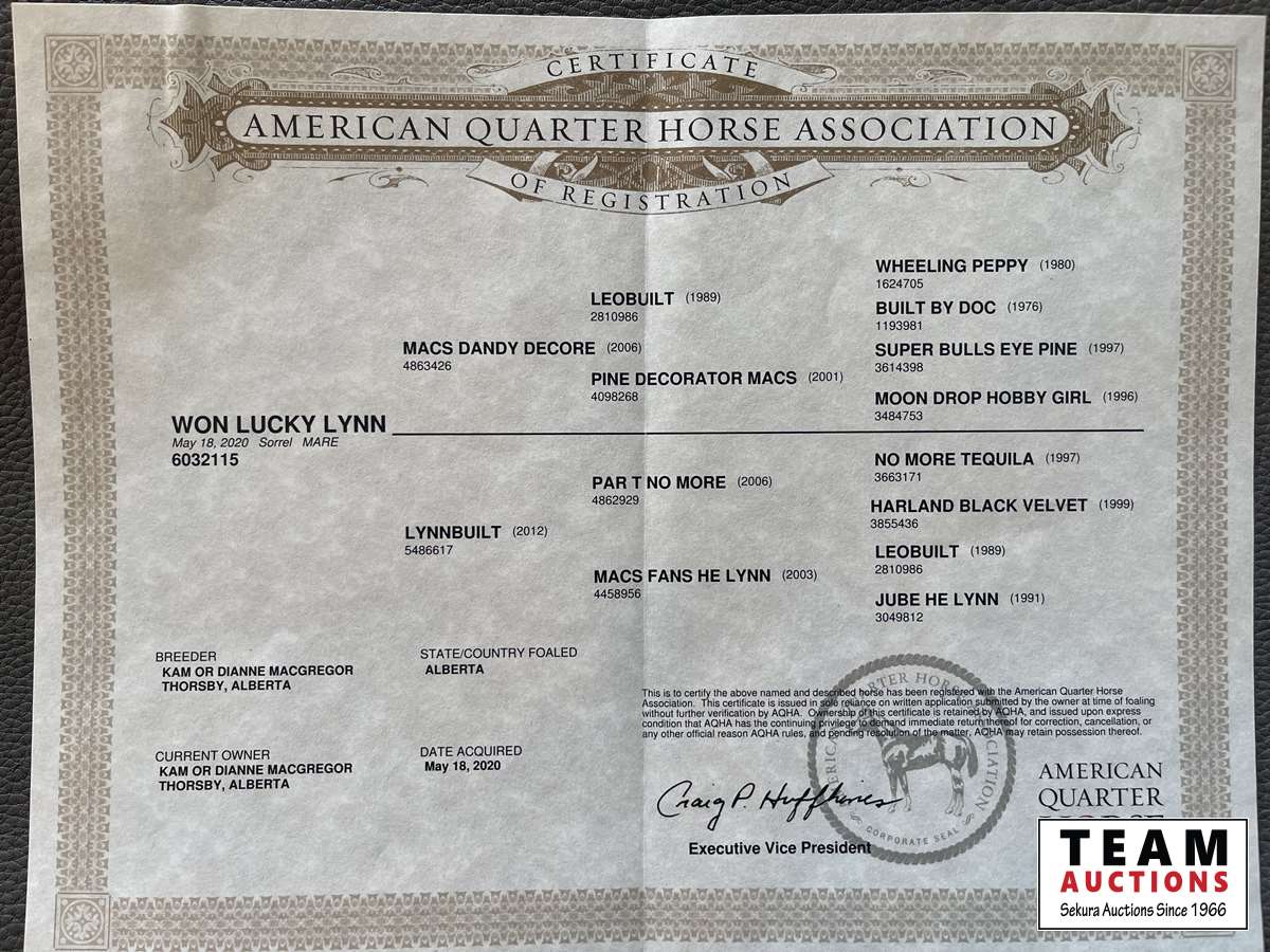 Registered Quarter Horses Unreserved Timed Auction for The Estate of Kam MacGregor – Near Thorsby, AB – May 7, 2022