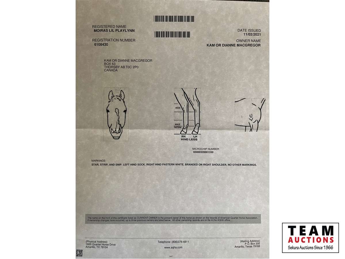 Registered Quarter Horses Unreserved Timed Auction for The Estate of Kam MacGregor – Near Thorsby, AB – May 7, 2022