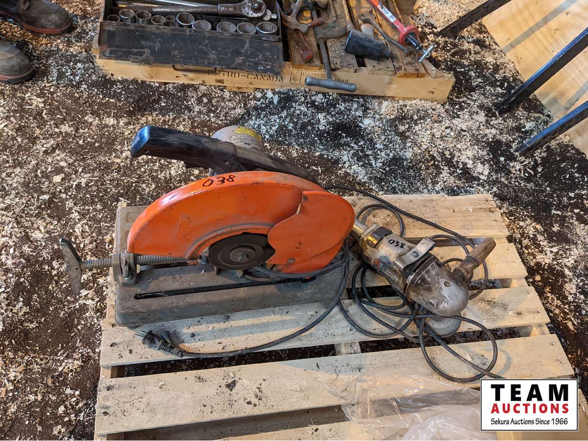 50 Makita 14 inch Chop saw, B&D 1/2 drill