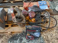 Motomaster battery charger, road flare kit, portable trailer lights, receiver key safe, electronic rust protector, starter
