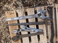 (4) Adjustable wrenches 12 inch, 15 inch, 18 inch & 24 inch, open end alignment wrench, qty of combination wrenches