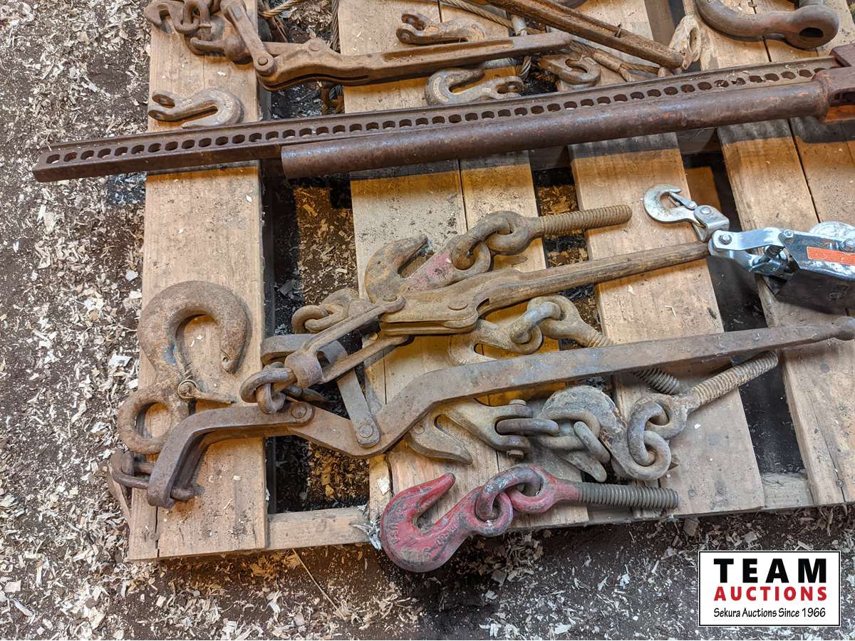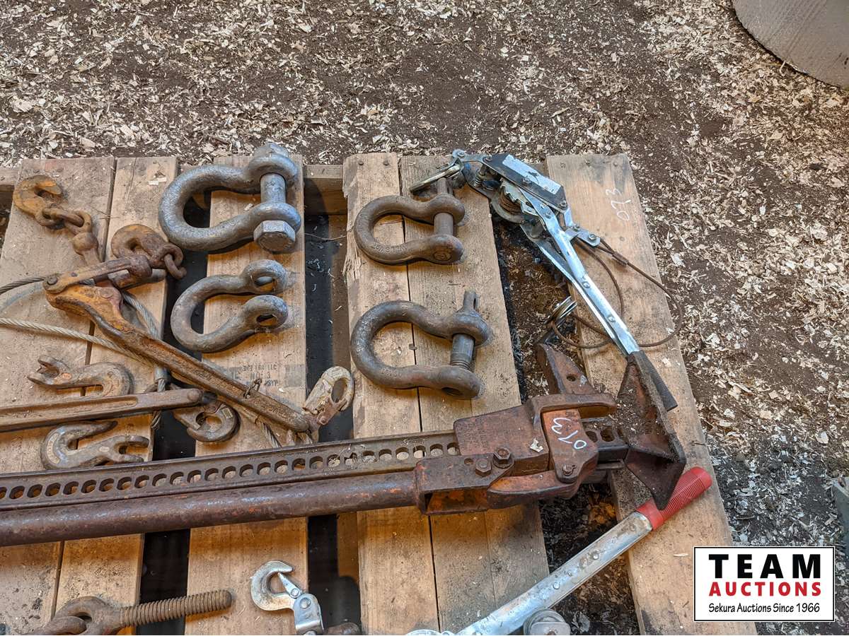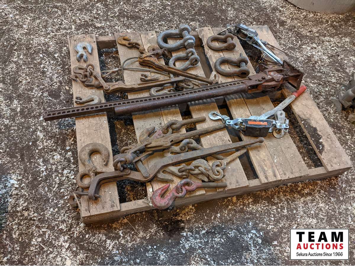 Jackall, (2) cable come-a-longs, chain hooks, shackles, boomers
