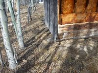 8 ft wide, wood construction with metal roof