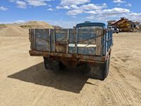 6 cylinder gas engine, 4 speed transmission, 9 ft wood box, hoist, 7.50-16 front & 235/85R16 duals