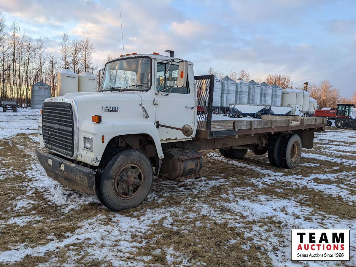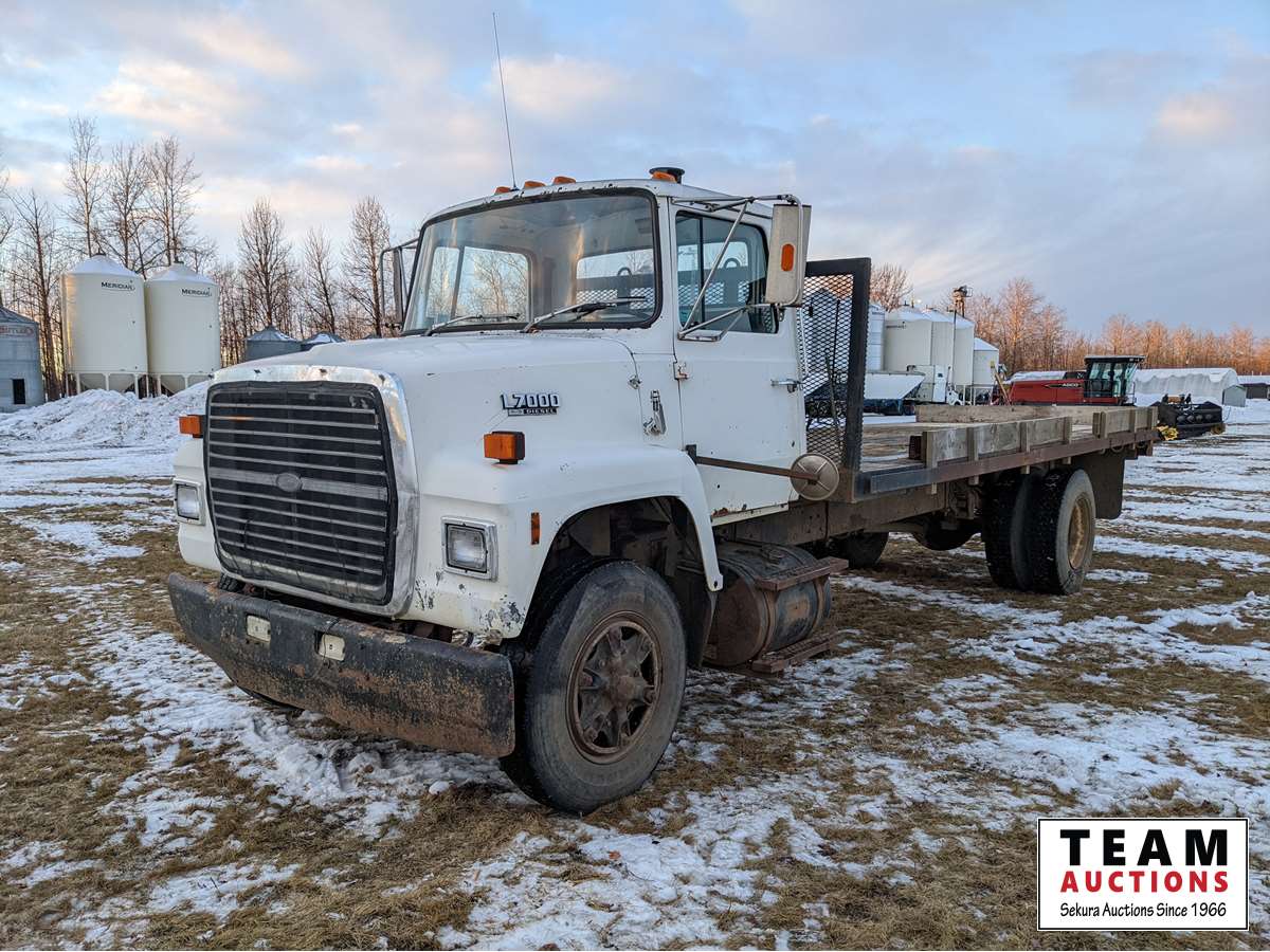34 1990 Ford L9000 S/A Flat Deck Truck