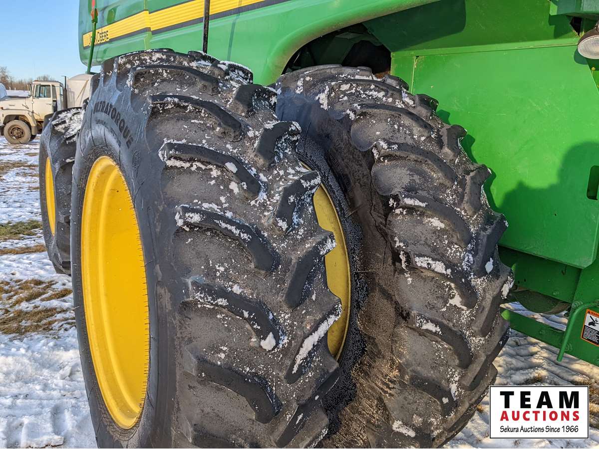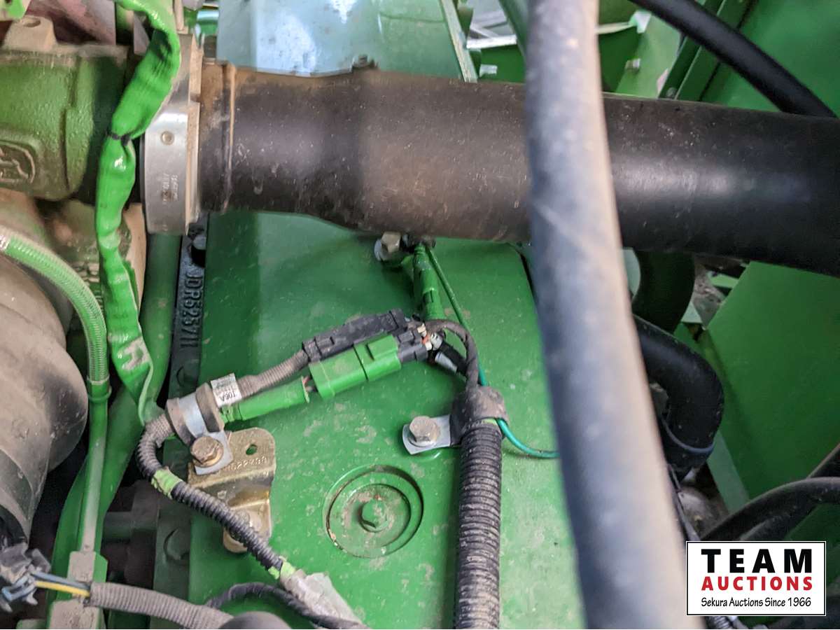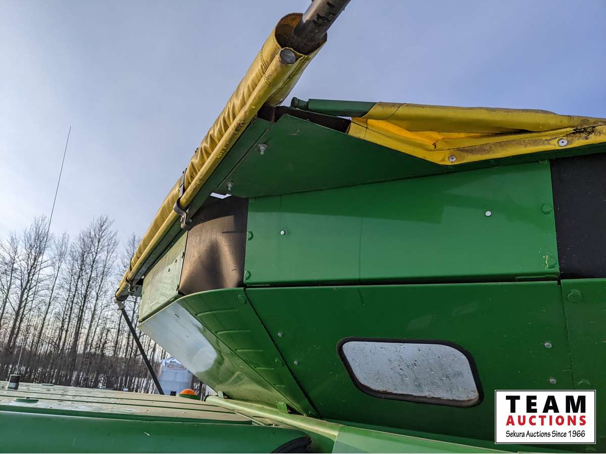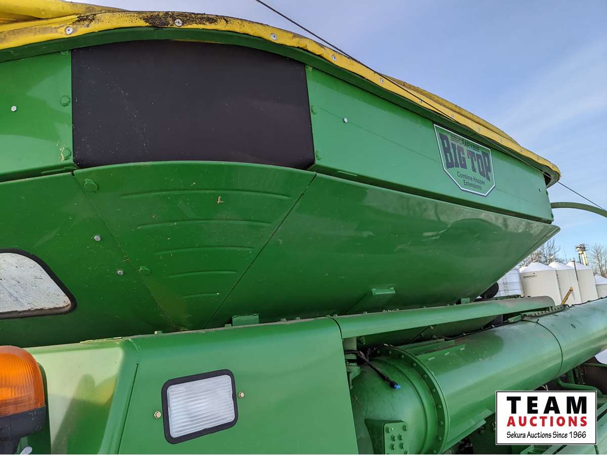 John Deere 615P belt pickup header, reverser, variable speed reel, header height control, auto steer ready, chopper, Crary Big Top hopper extension with roll tarp, chopper, 520/85R38 front duals, 28 L -26 rear, 1620 separator hrs