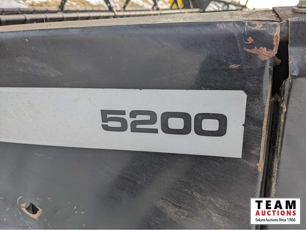 5200 header, pickup reels, triple delivery, variable speed reel, fore and aft, auto steer, Trimble GPS, Roto Shears on both ends, 18.4R26 front 14 L -16.1 rear