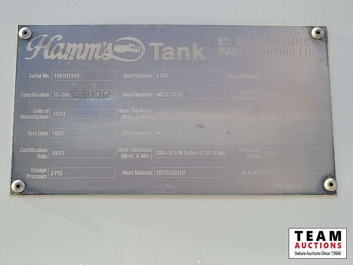 CAT C-16, 600 HP engine, Eaton Fuller 18 speed transmission, locking differential, front axle air ride assist, HN torque flex suspension, engine brake, Hamm 100 BBL, TC306 crude tank, Chelsea PTO, tool box, aluminum wheels, 385/65R22.5 front, 11R24.5 rear