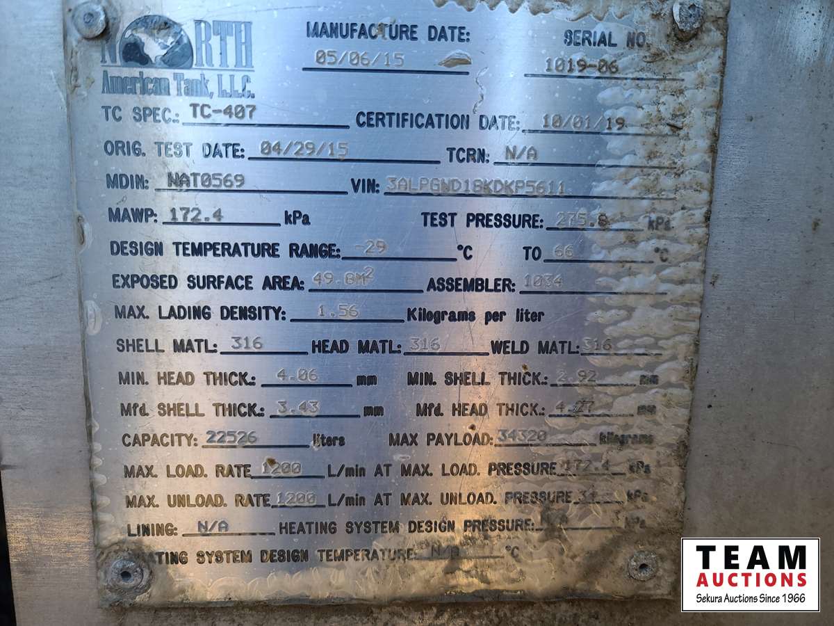 Detroit DD16, 600 HP engine, Freightliner 18 speed transmission, air ride suspension, triple locking differential, 20,000 lb front axle, 52,000 lb rear axles, north America TC 407, 22,526 liter tank, aluminum rims, 425/65R22.5 front, 11R24.5 rear