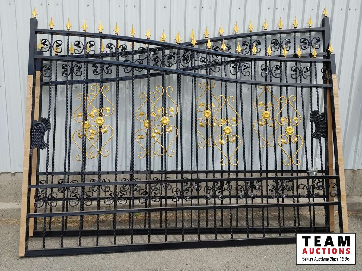 20 ft bi-parting deluxe wrought iron ornamental gate, forged steel, golden decoration, hinges included