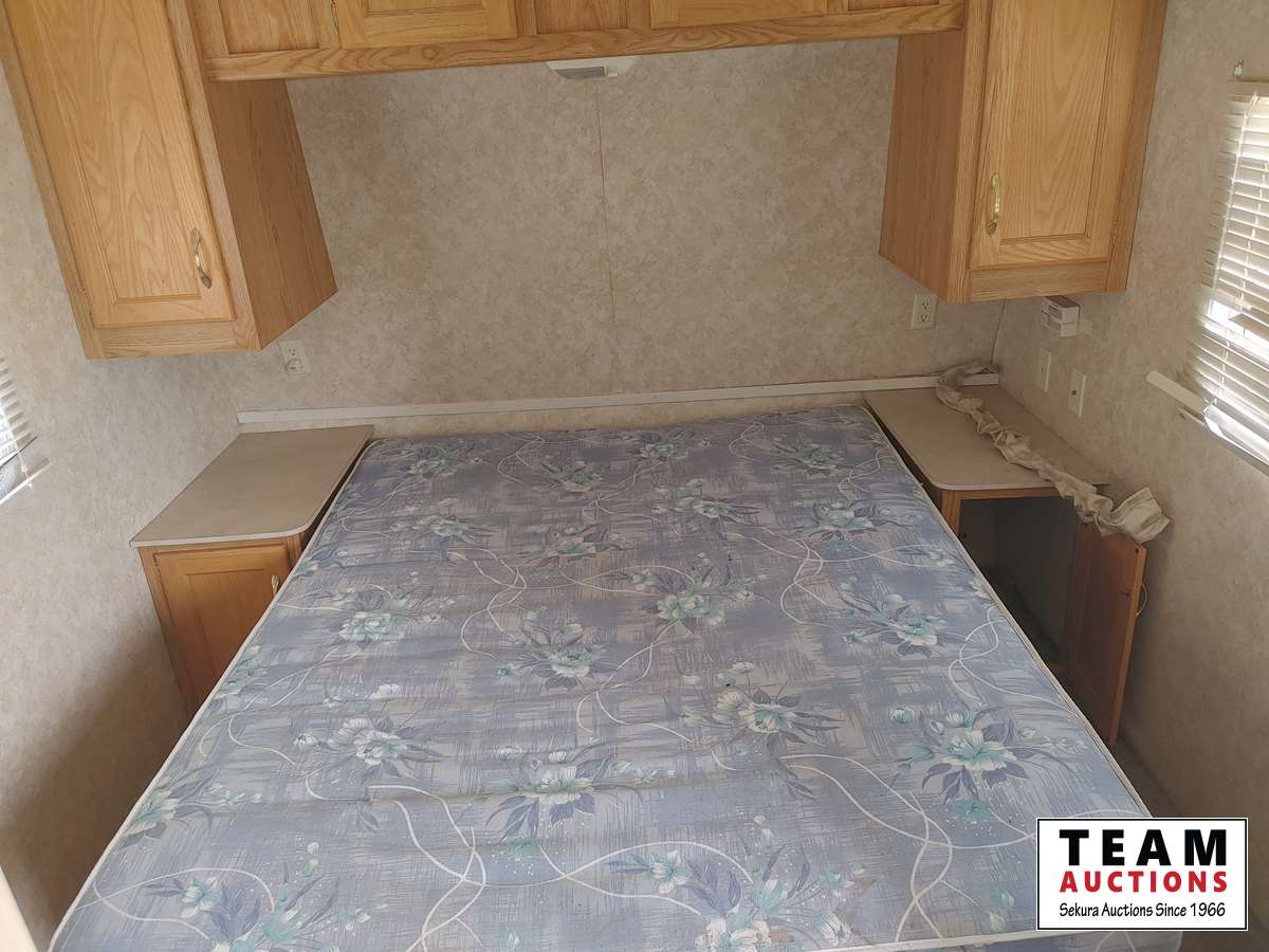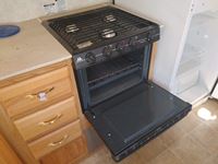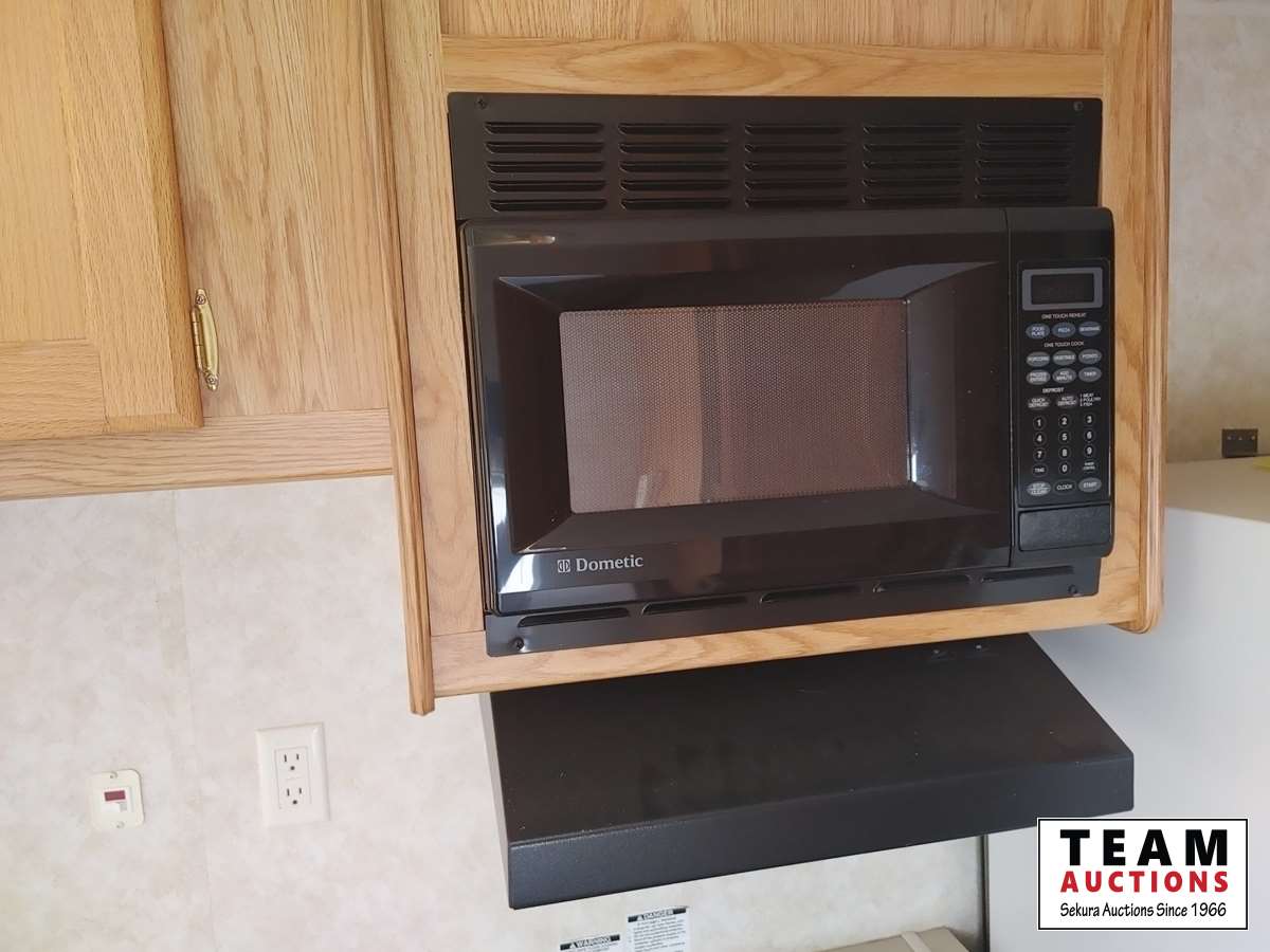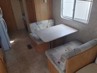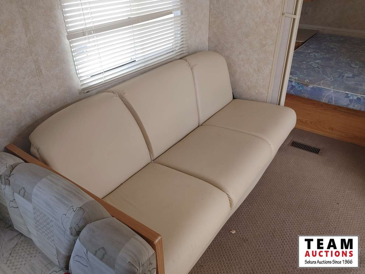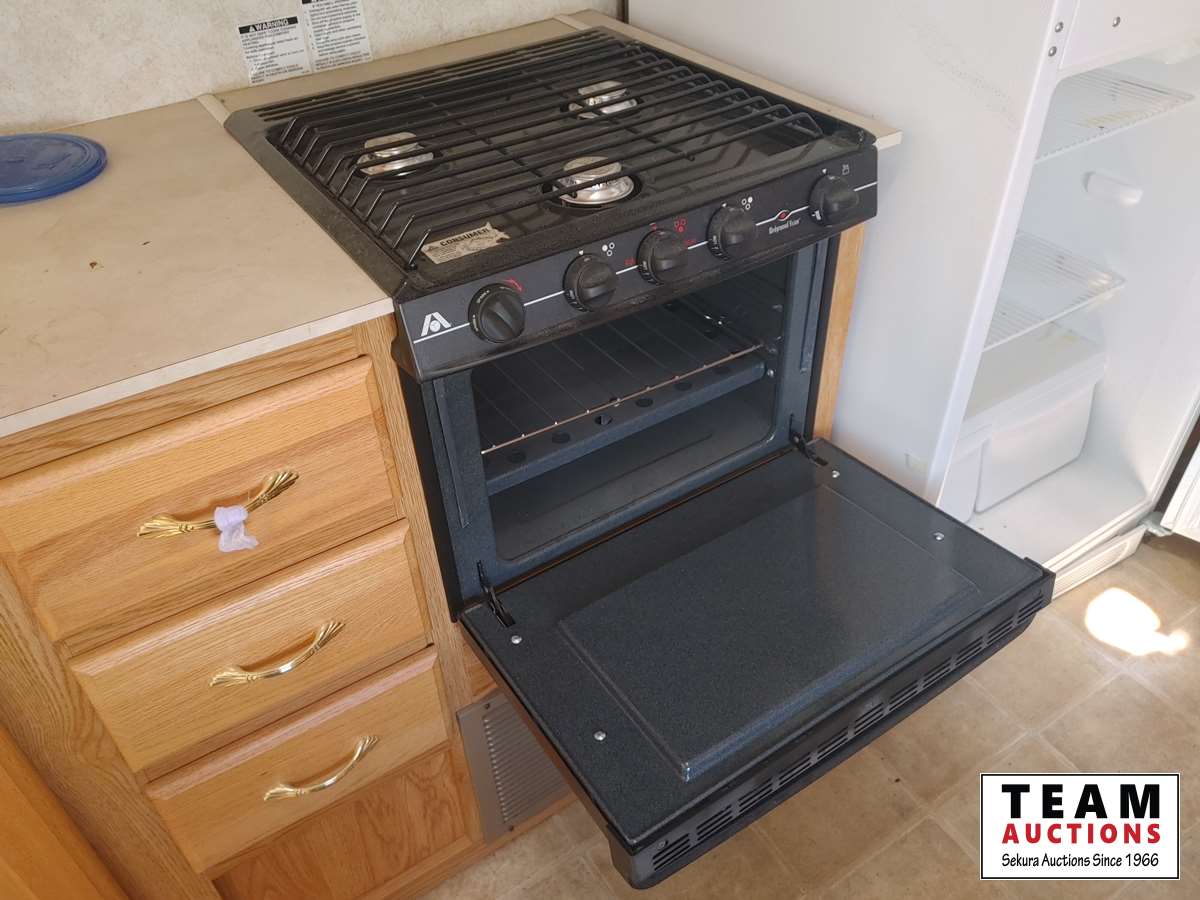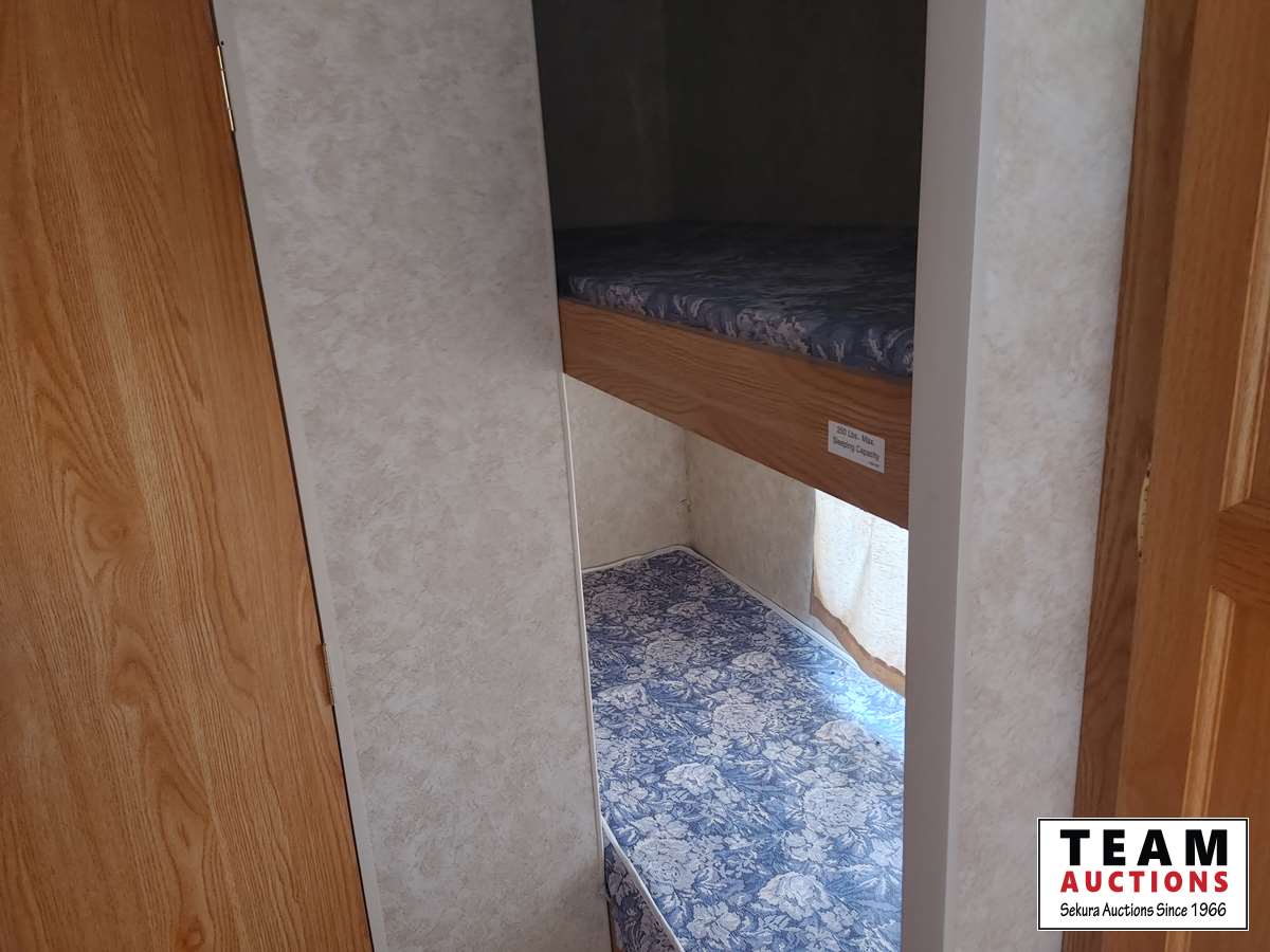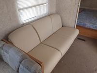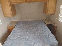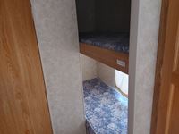 Fullsize fridge, stove/oven, microwave, kitchen, couch/bed, double bed, bunk bed, bathroom, 205/75R14C tires