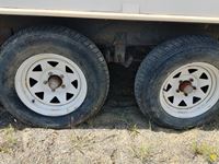 Fullsize fridge, stove/oven, microwave, kitchen, couch/bed, double bed, bunk bed, bathroom, 205/75R14C tires