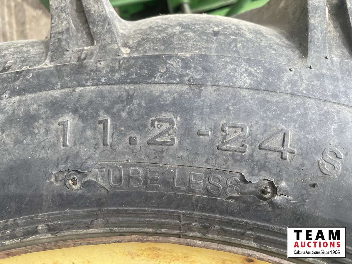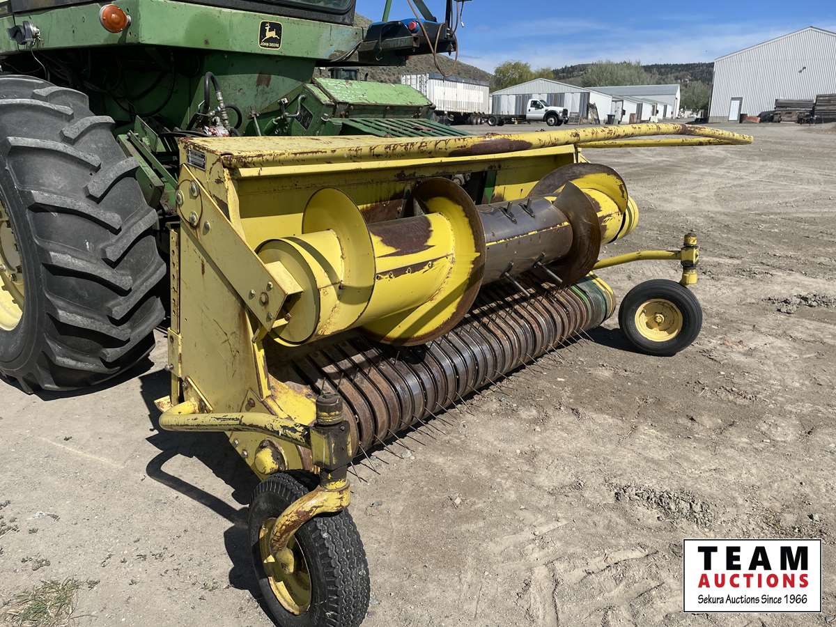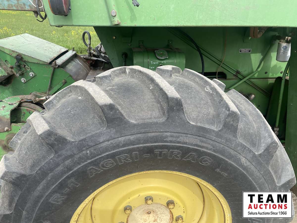 84 inch pickup head and 3 row 30 inch corn head, 6 cylinder engine, 18.4 x 26 drive TIRES,11.2 rear tires with hydraulic assist