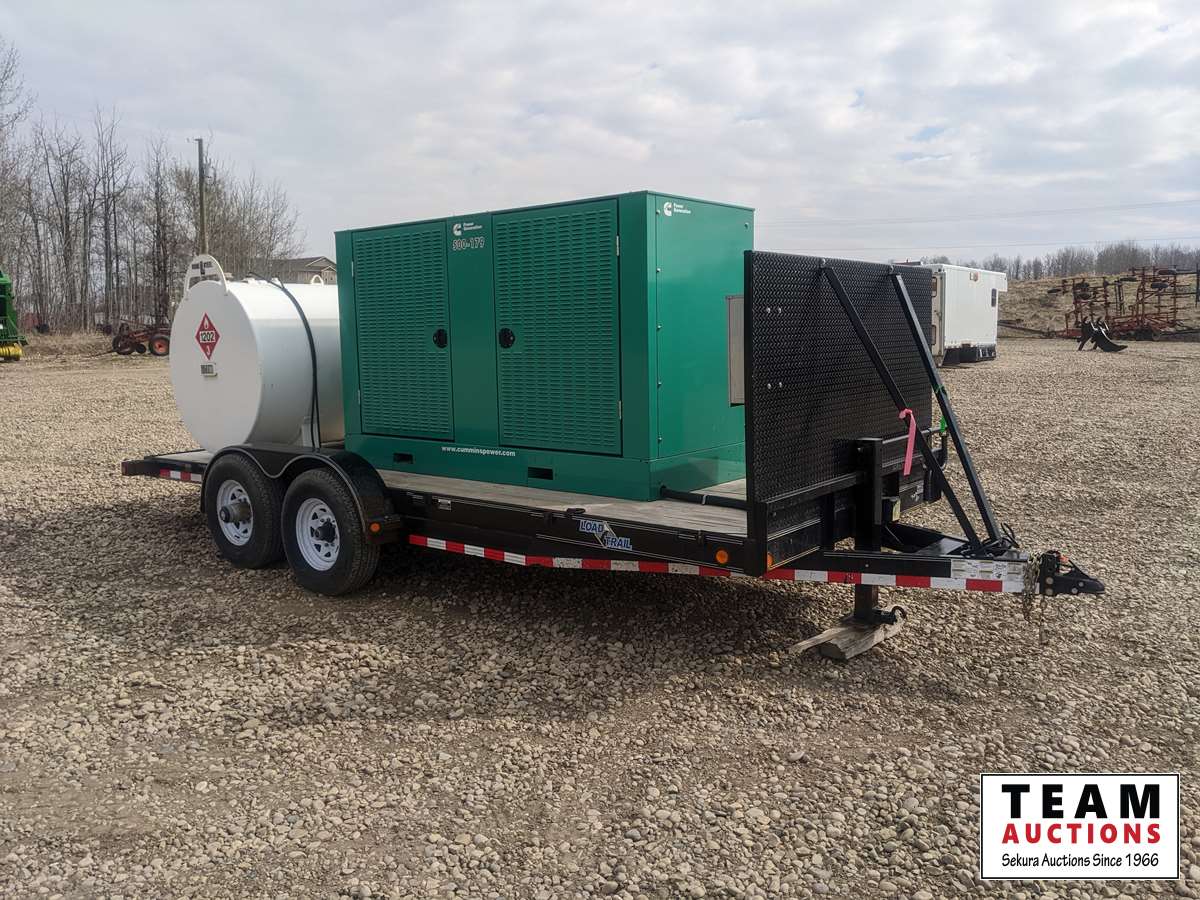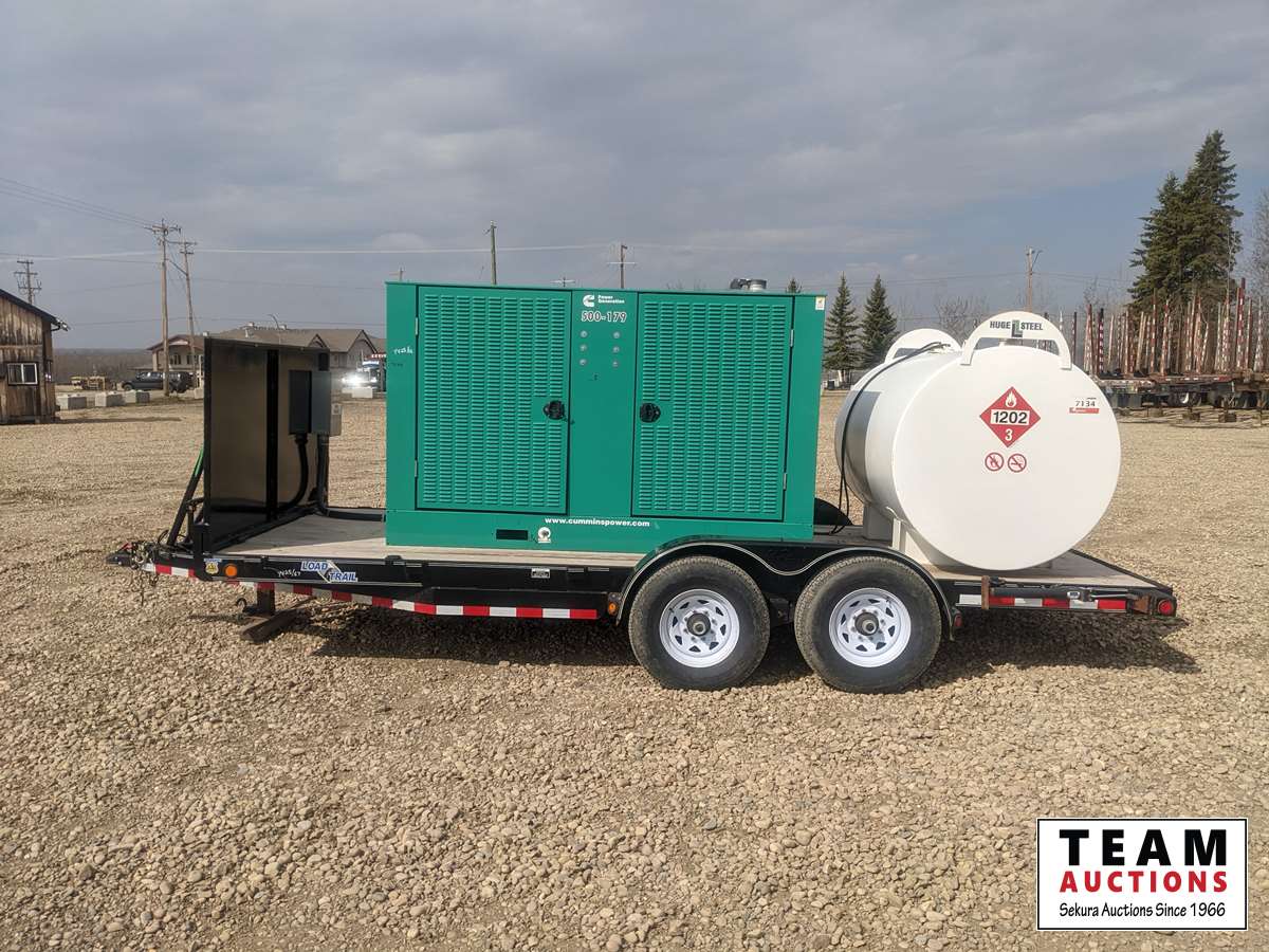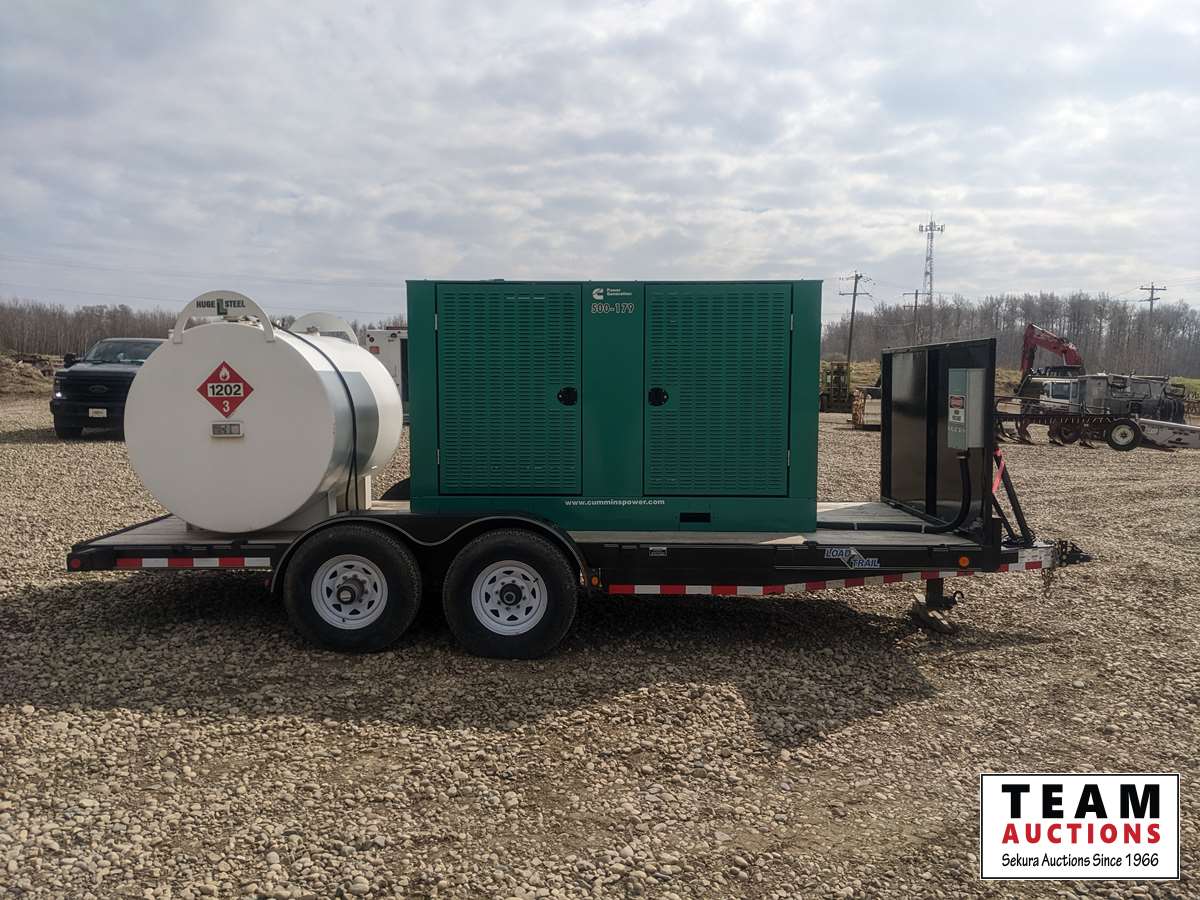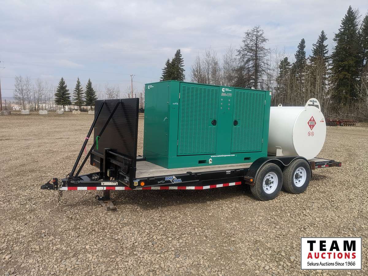 120/208/240/277/480 V, 83.8kW 1ph 125kW 3ph, Cummins, 6.7 L, 6 cylinder, diesel, 2012 Load Trail T/A equipment trailer, (2) 7000 lbs axles, spring suspension, 2012 Huge Steel 2275 litre fuel tank, ST235/80R16