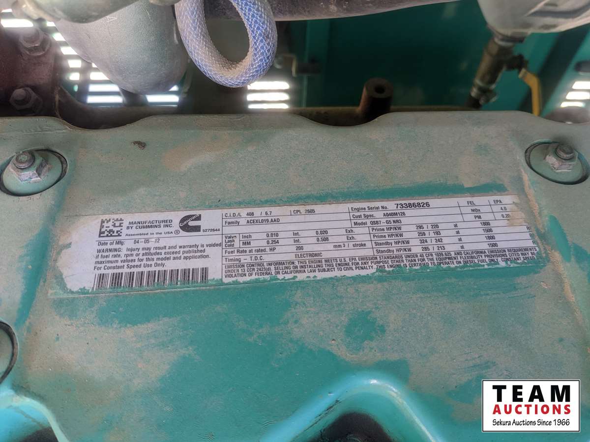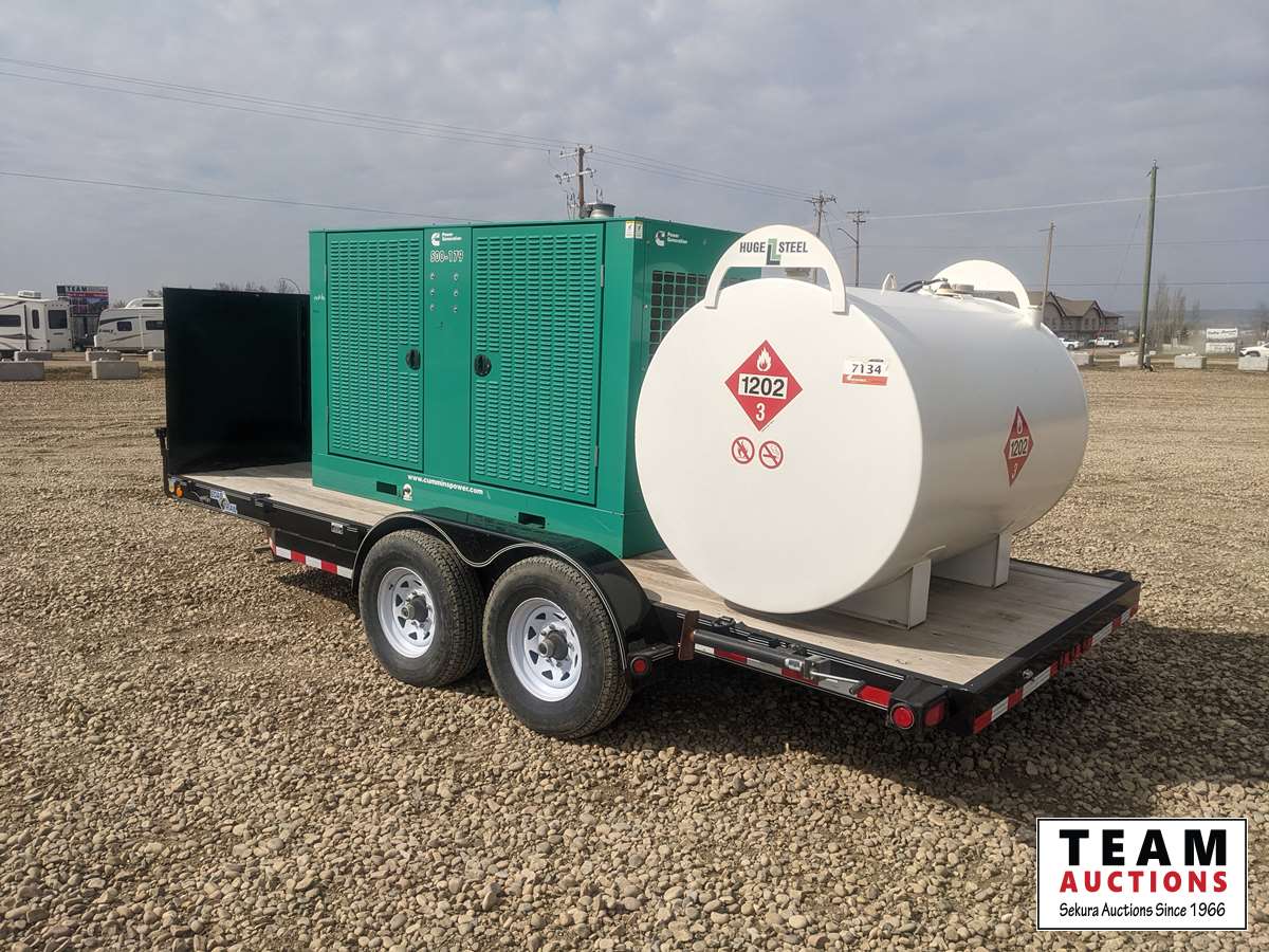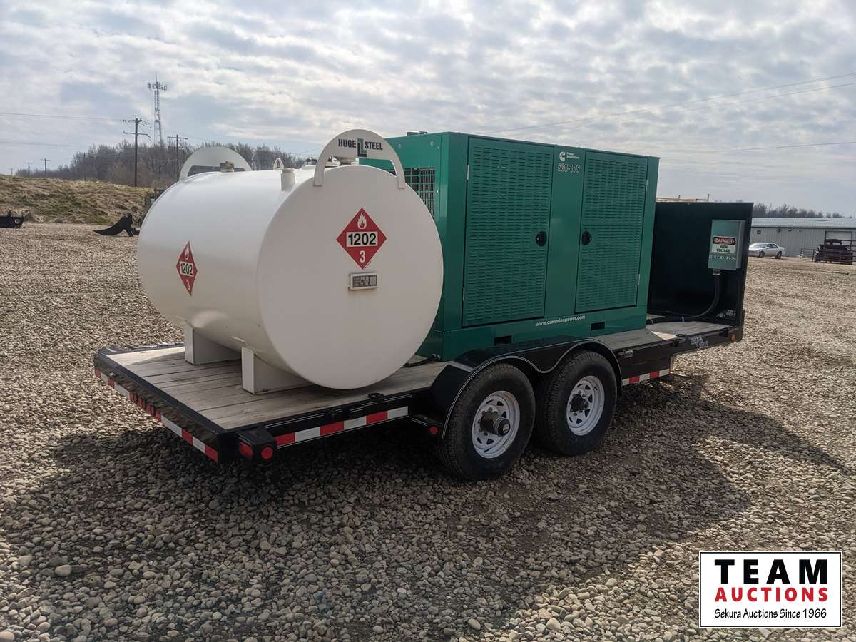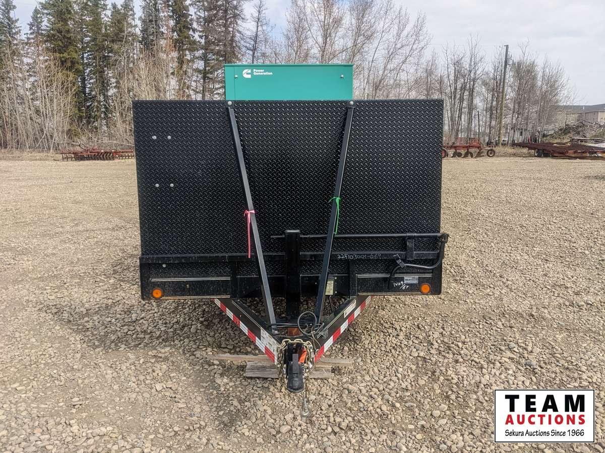 120/208/240/277/480 V, 83.8kW 1ph 125kW 3ph, Cummins, 6.7 L, 6 cylinder, diesel, 2012 Load Trail T/A equipment trailer, (2) 7000 lbs axles, spring suspension, 2012 Huge Steel 2275 litre fuel tank, ST235/80R16