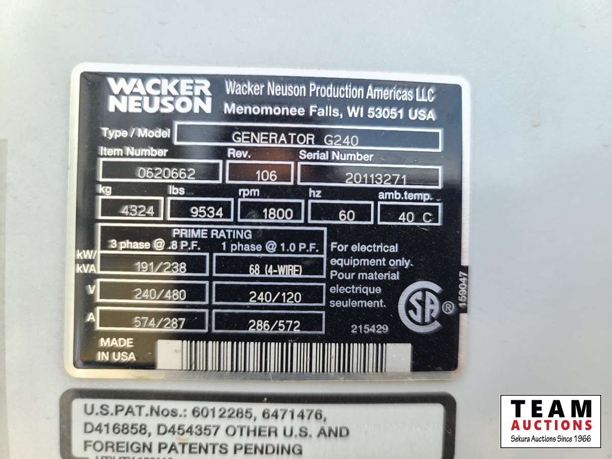 202 2012 Wacker Neuson G240 191 kW T/A Generator Trailer